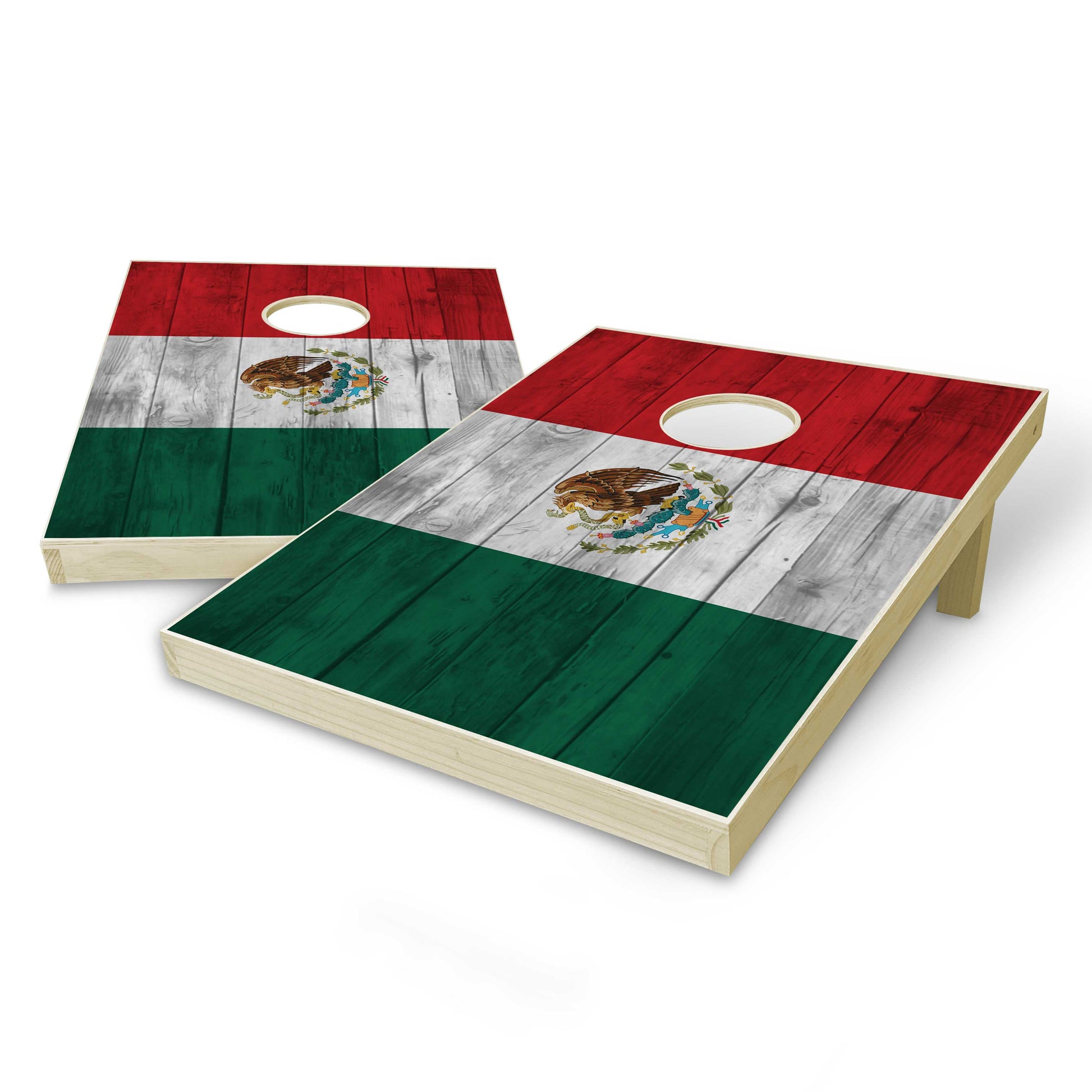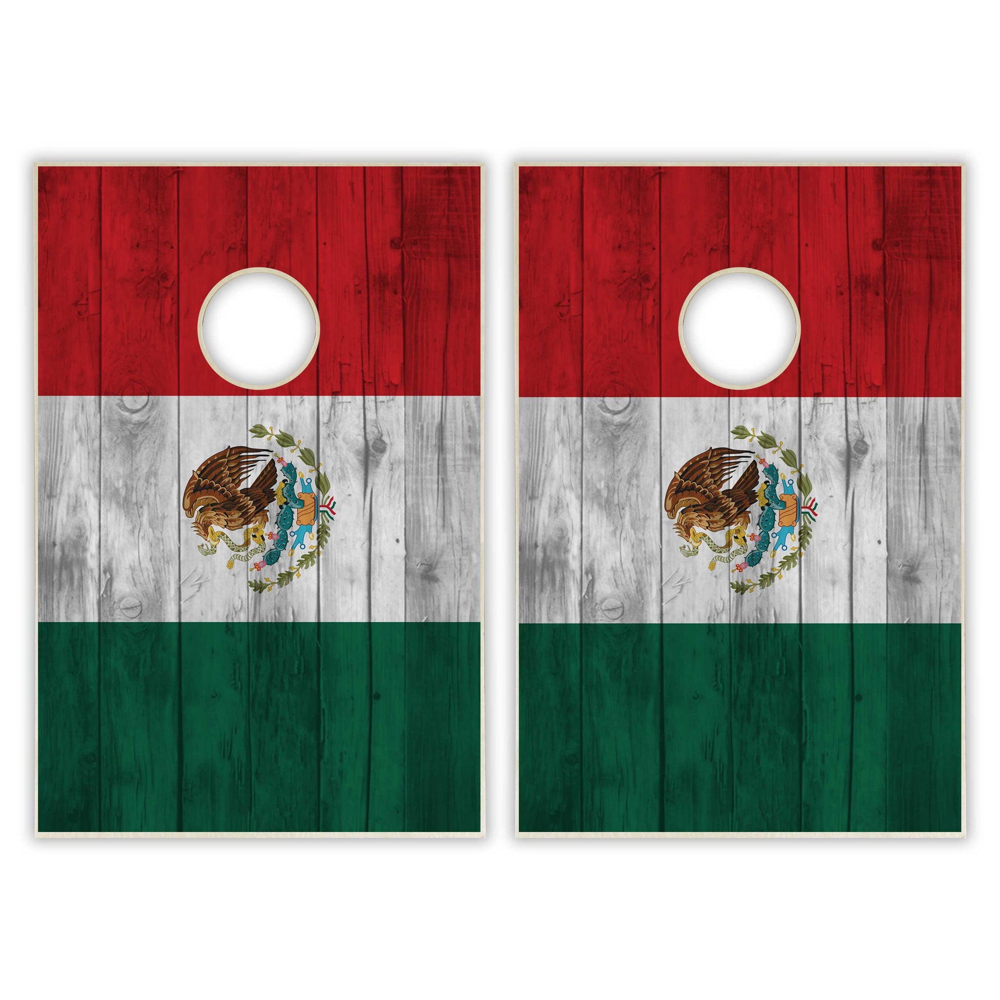 Mexico Flag Tailgate Cornhole Set - Distressed Wood