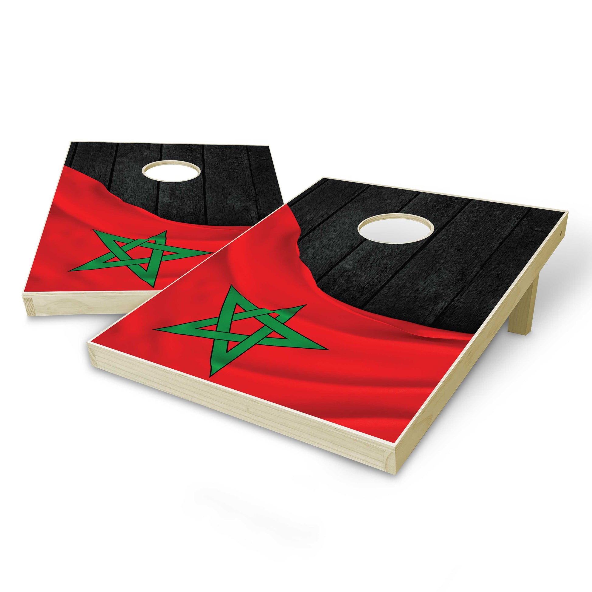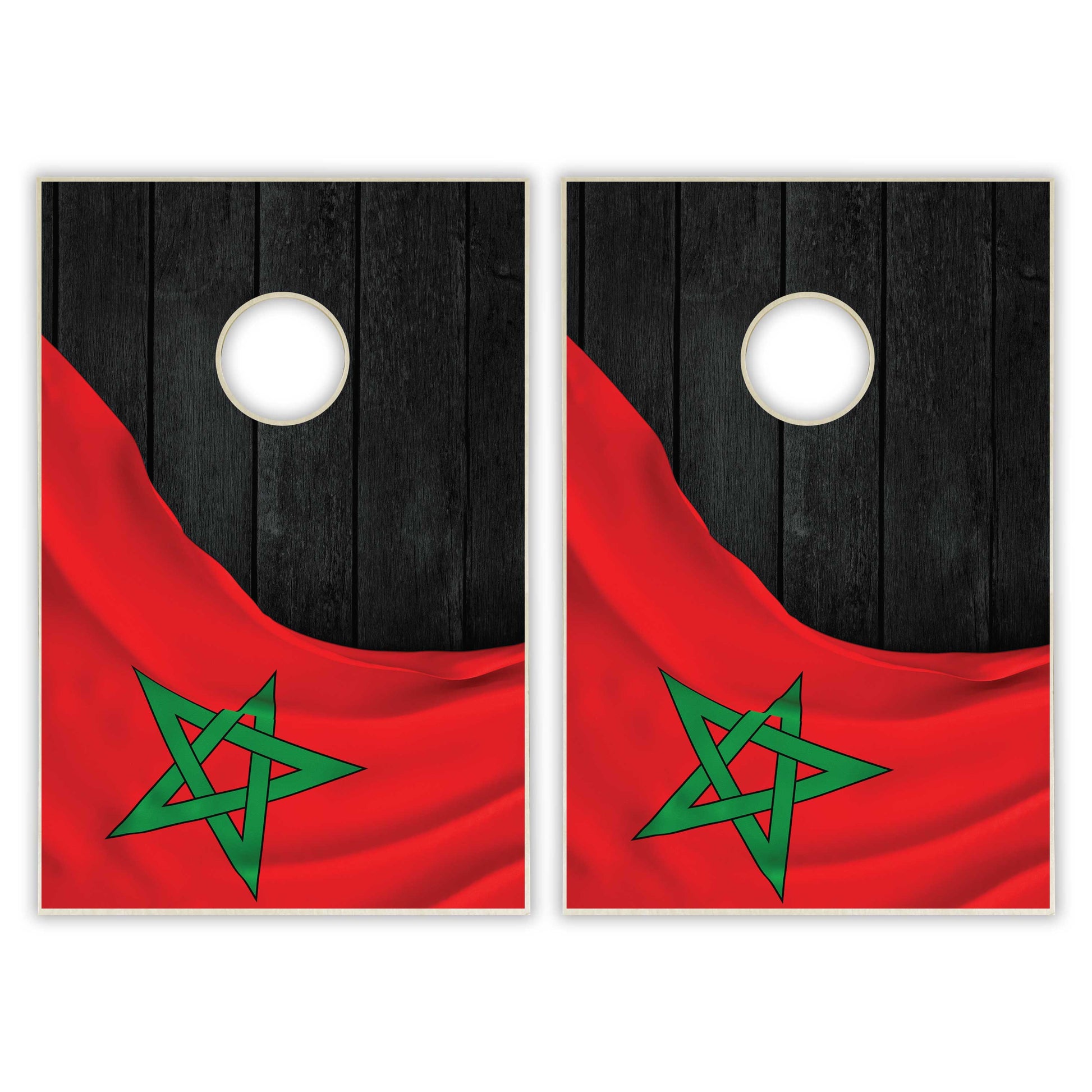 Morocco Flag Tailgate Cornhole Set - Black Wood