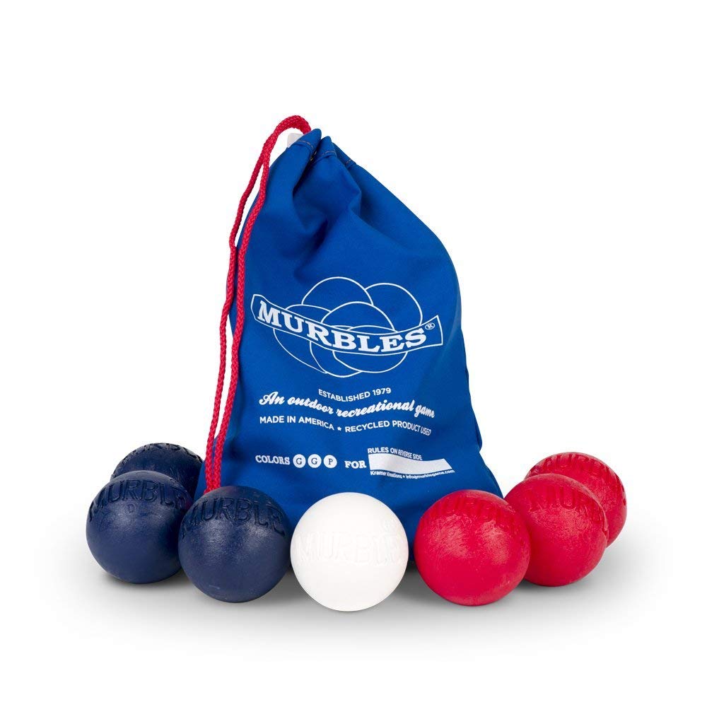 Murbles is the lightweight Bocce ball game that is fun for the whole family. Just like Bocce but more exciting with lighter balls and a pallino that can be knocked around. Murbles is like a travel bocce ball set but it's an American made outdoor family game that can be played and enjoyed by all ages.