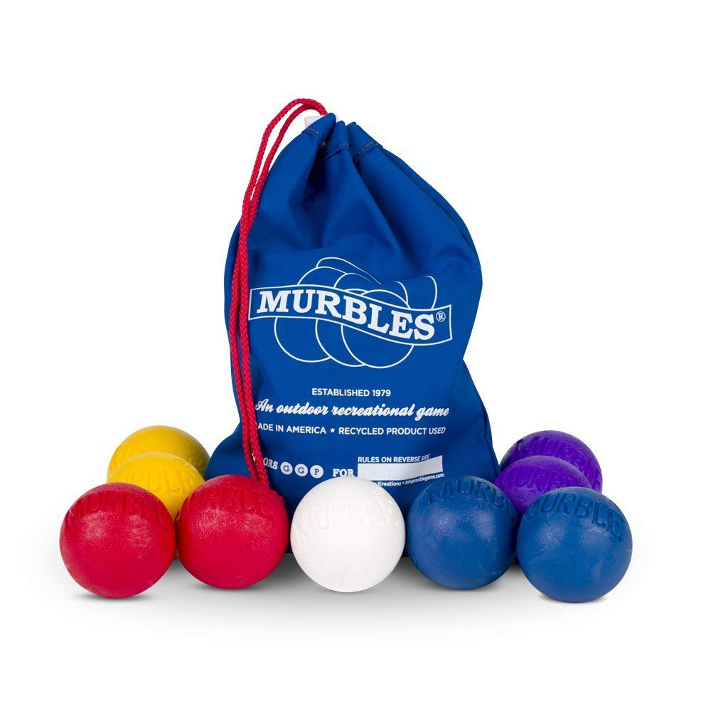 Murbles is the lightweight Bocce Ball set that's great for the whole family. Just like Bocce but more exciting with lighter balls and a pallino that can be knocked around. The Murbles game is an American made outdoor family game that can be played and enjoyed by all ages.