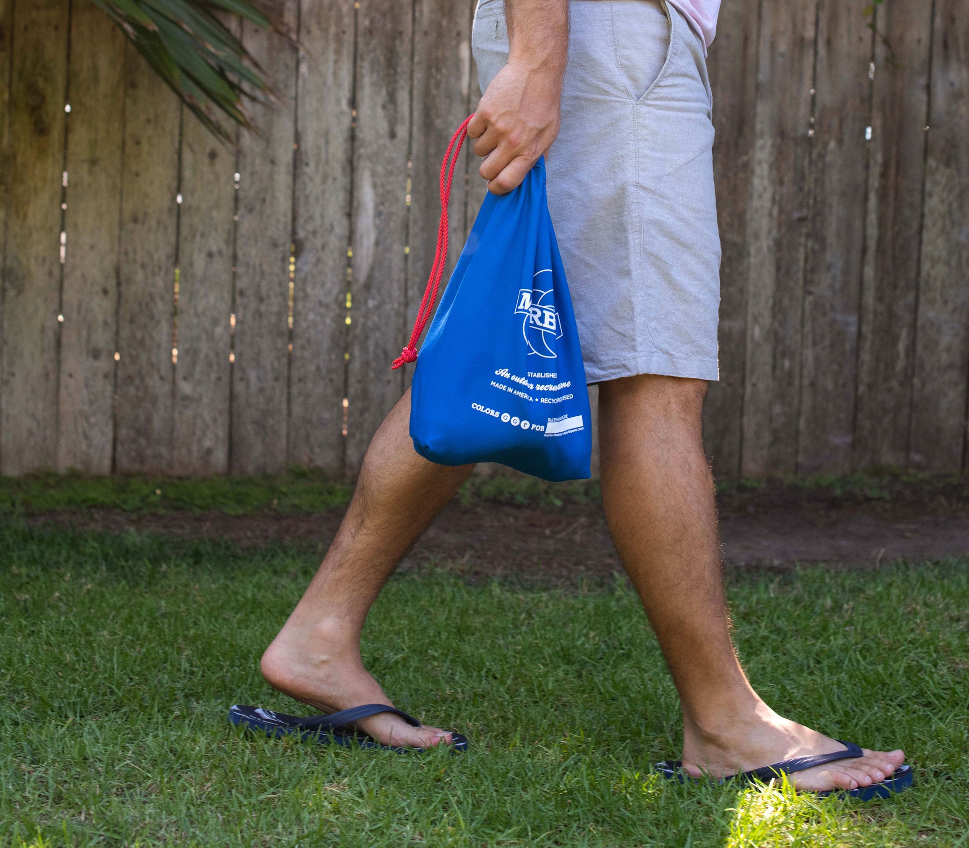 The standard 9 ball game set weights in at about 6 pounds, making it a totable game easy to take to the beach, park, camping, tailgating or just out in the backyard. All of the Murbles are the same size, 3 inches in diameter with a unit weight of about 1/2 pound each. In this travel Bocce Ball set, the balls are made of high density poly plastic that provide durability and good ball action. They are also buoyant just in case one gets tossed into water.
