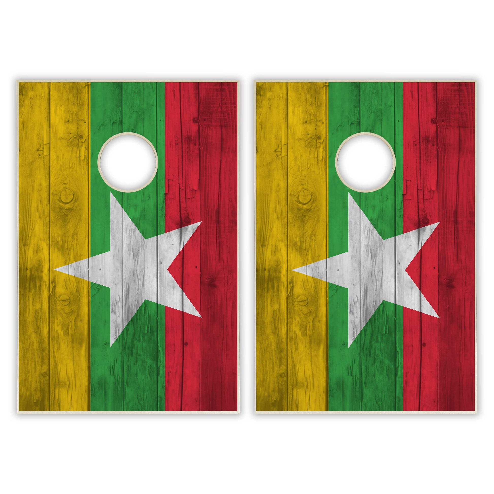 Myanmar Flag Tailgate Cornhole Set - Black Wood