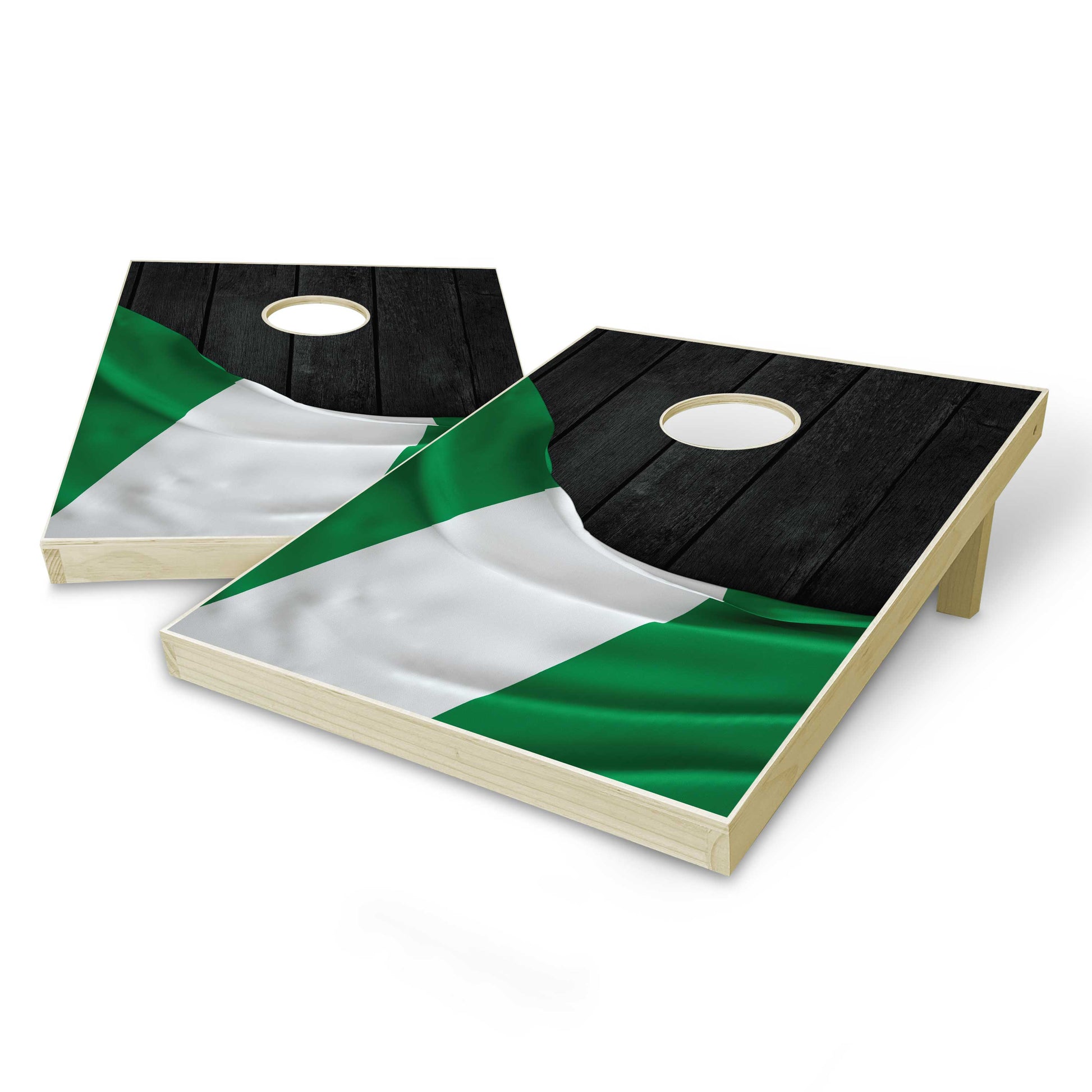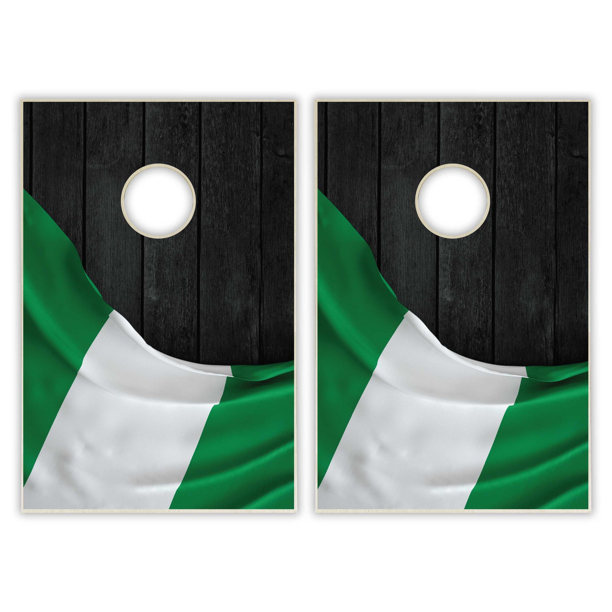 Nigeria Flag Tailgate Cornhole Set - Black Wood