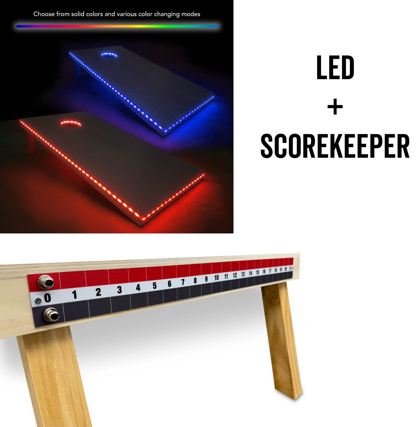Add LED lights around the perimeter of your boards and in the hole! The LED lights include rope lighting that is inlaid into the wood and can be set to any color and various color changing modes. Keep playing when the sun goes down with this unique addition!