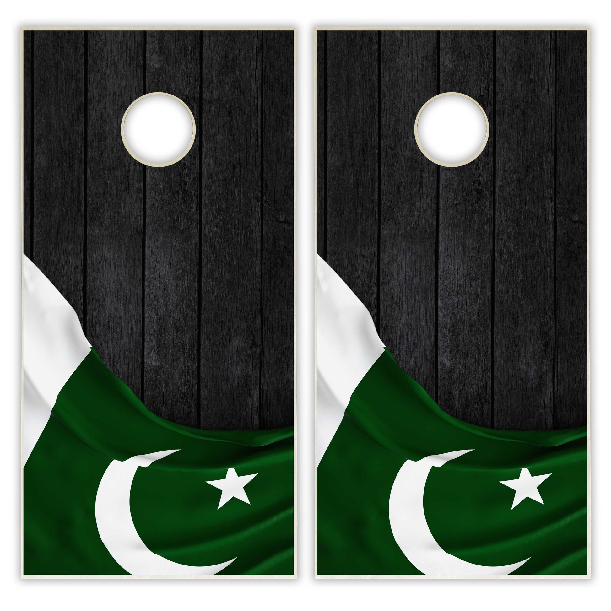 Show off at your next event with this specialty-designed Pakistan Flag Cornhole party game set!