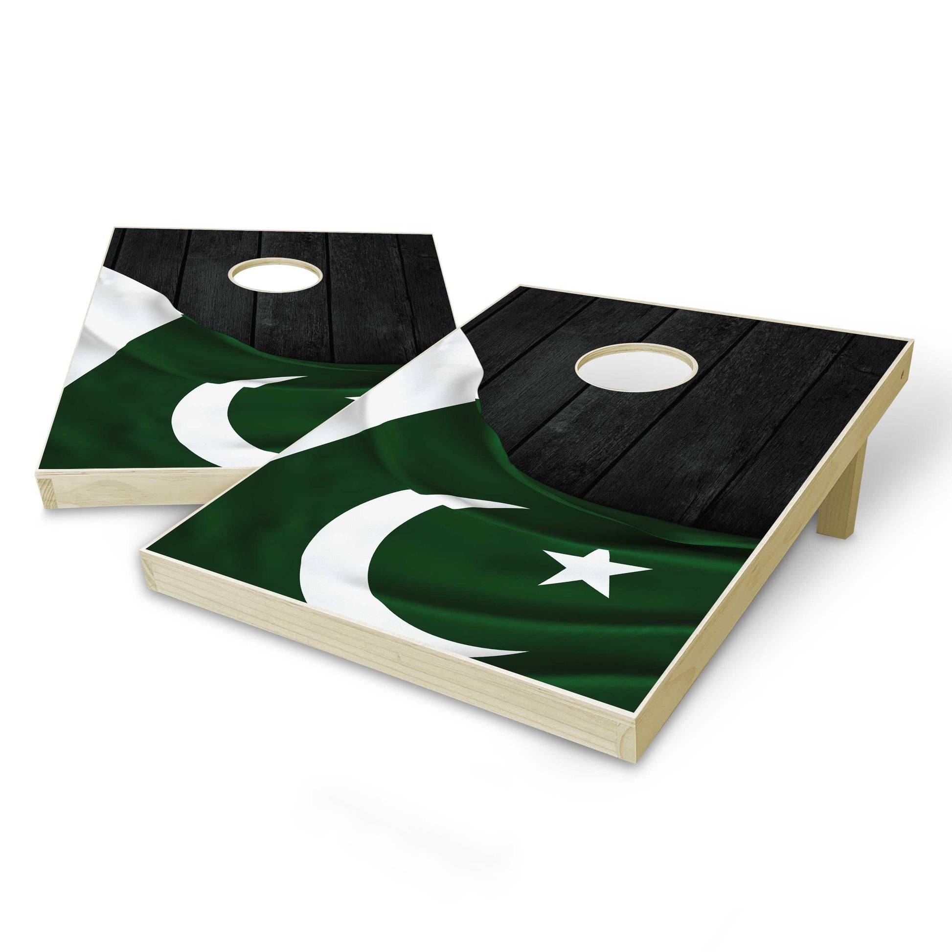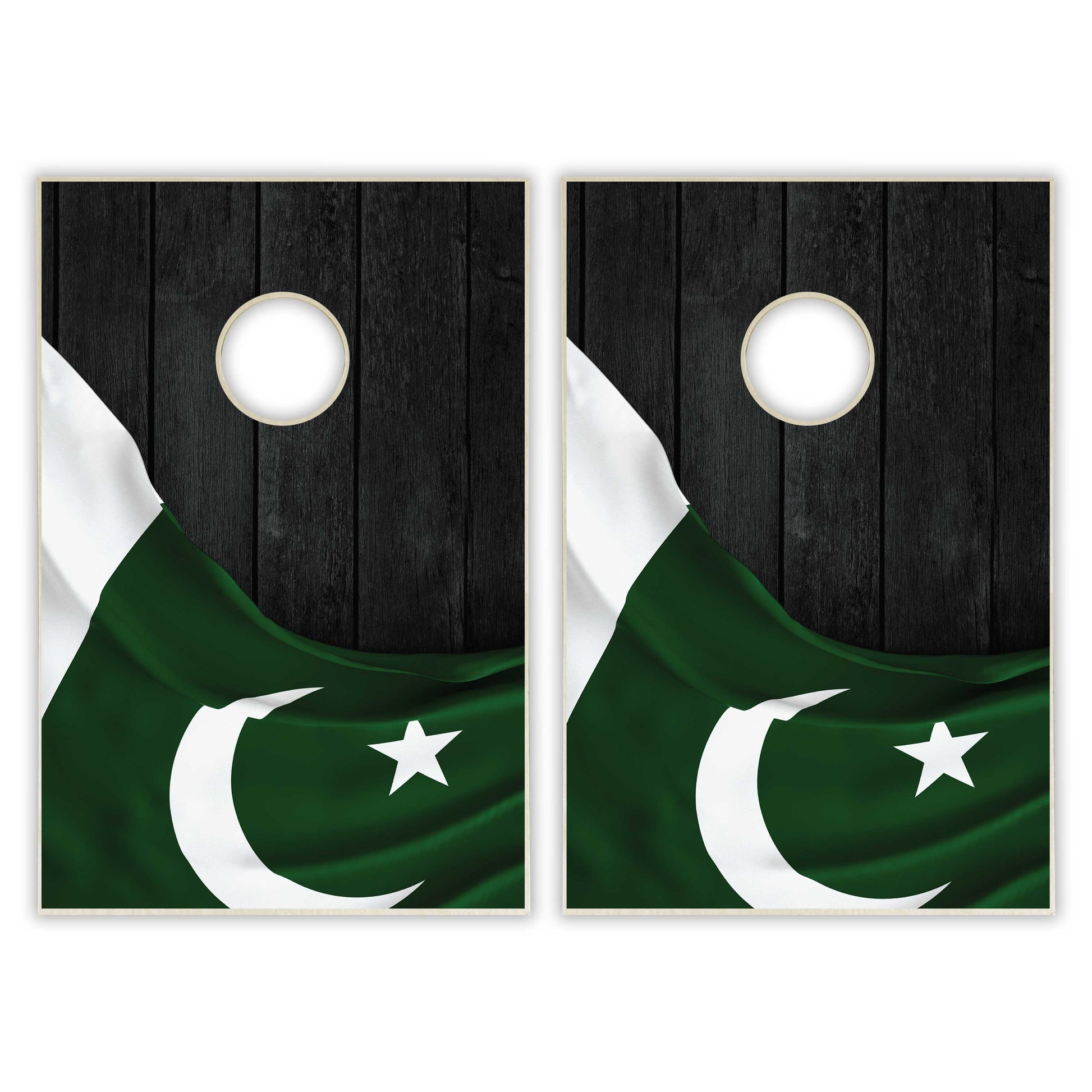 Pakistan Flag Tailgate Cornhole Set - Black Wood