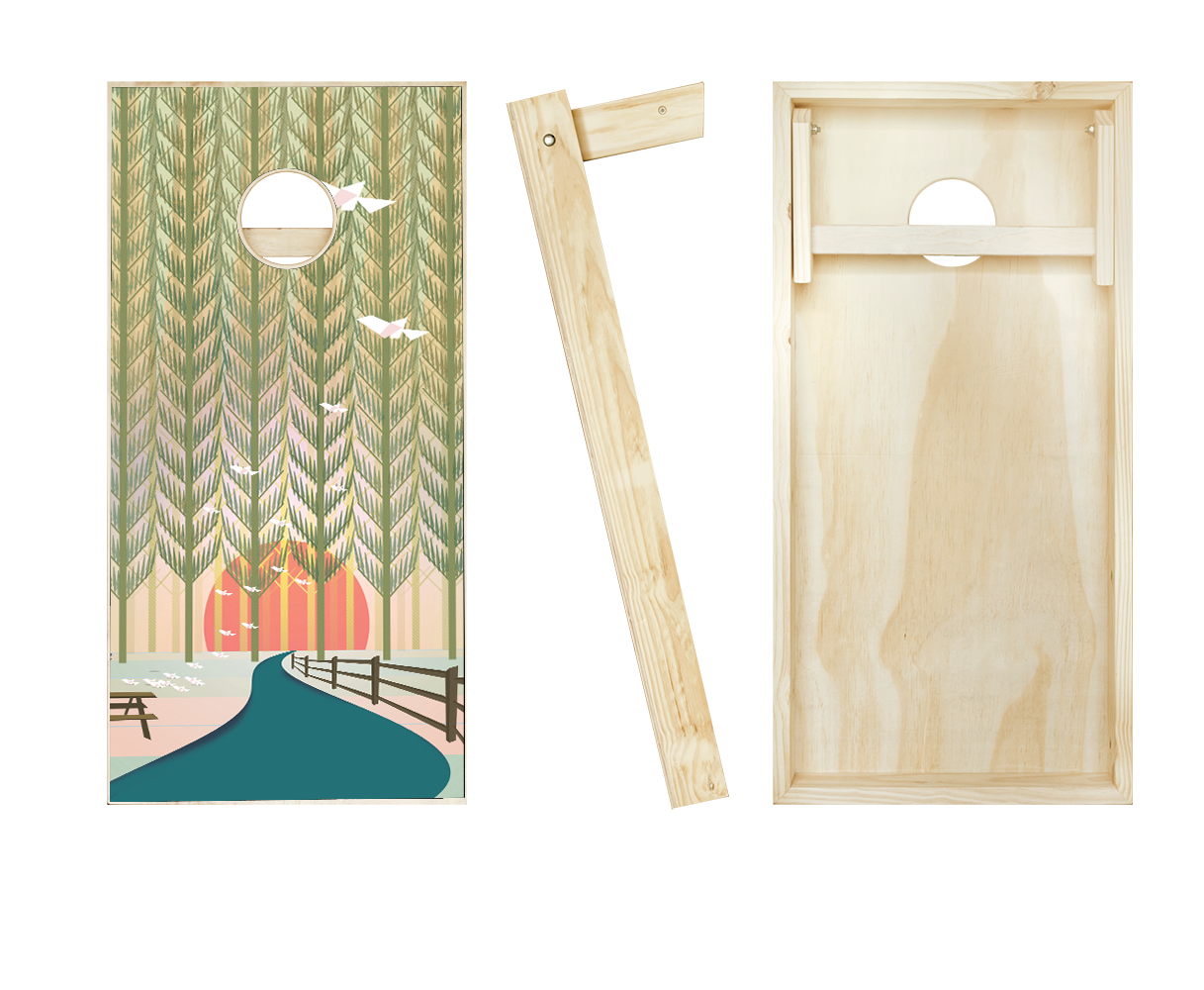Show off at your next event with this specialty designed cornhole set! The decal is printed vinyl and finished with a clear coat polyurethane to protect your boards for years. This 24"x48" set of cornhole boards comes with folding legs and you can add a full set of 8 standard cornhole bags. The boards are completely sanded for a smooth finish. These boards are made of quality 1/2" plywood and will hold up to anything you throw at them. Great for a BBQ, tailgating, camping, or just a relaxing day in the sun. Our boards are ACA Certified!