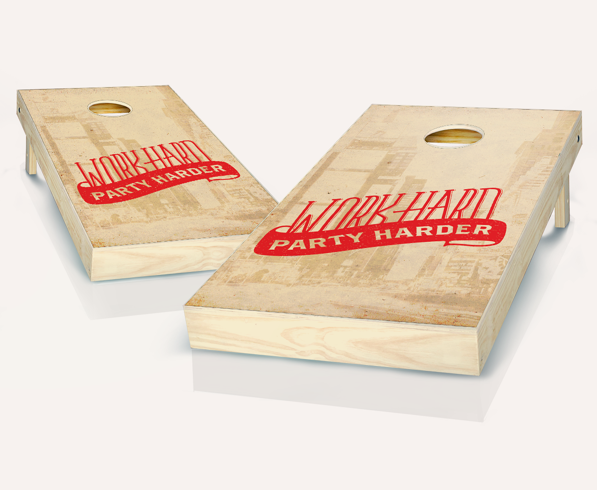 Show off at your next event with this specialty designed cornhole set! The decal is printed vinyl and finished with a clear coat polyurethane to protect your boards for years. This 24"x48" set of cornhole boards comes with folding legs and you can add a full set of 8 standard cornhole bags. The boards are completely sanded for a smooth finish. These boards are made of quality 1/2" plywood and will hold up to anything you throw at them. Great for a BBQ, tailgating, camping, or just a relaxing day in the sun. Our boards are ACA Certified!