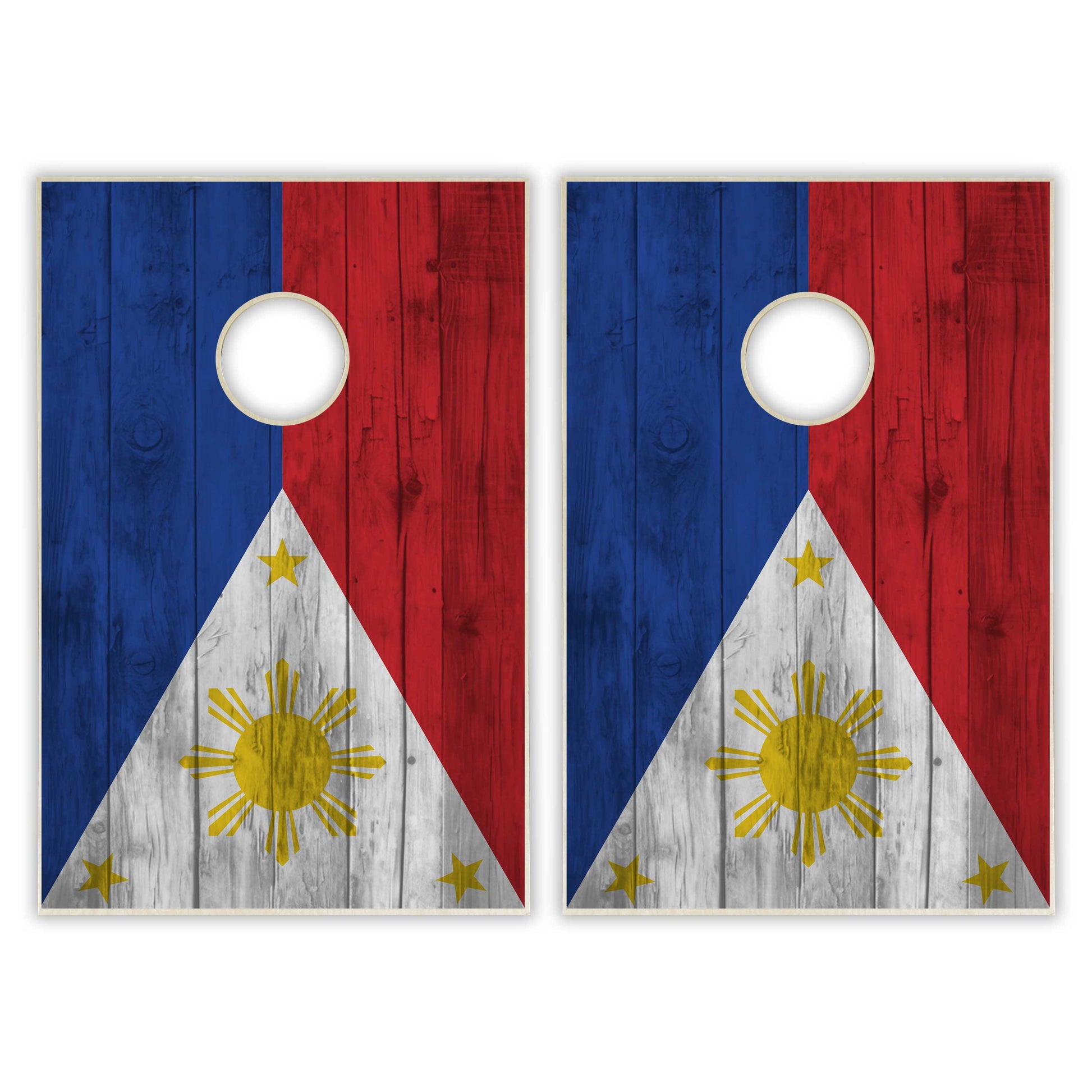 Phillippines Flag Tailgate Cornhole Set - Distressed Wood