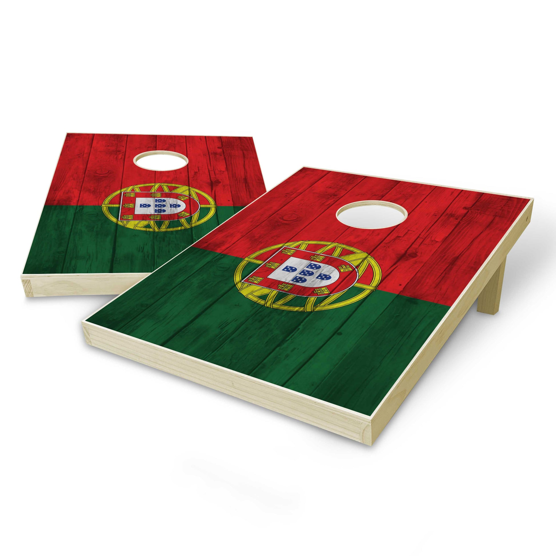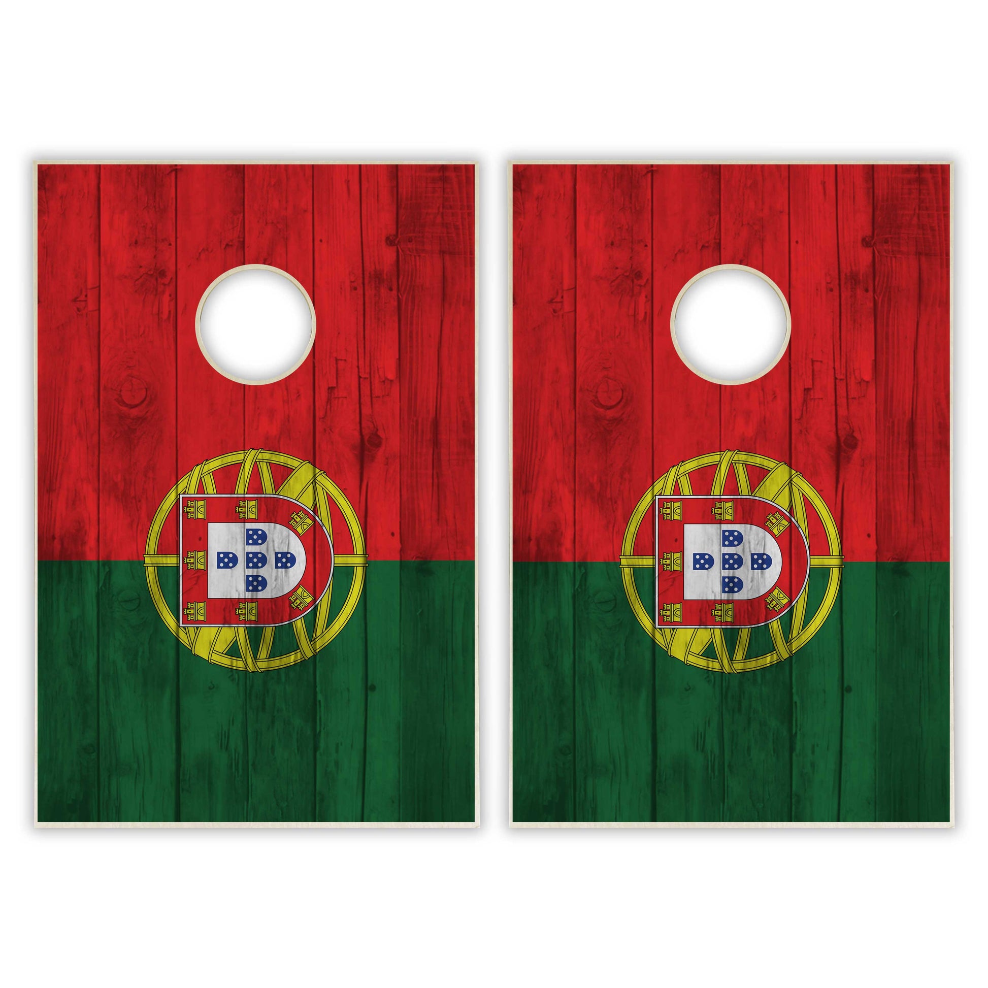 Portugal Flag Tailgate Cornhole Set - Distressed Wood