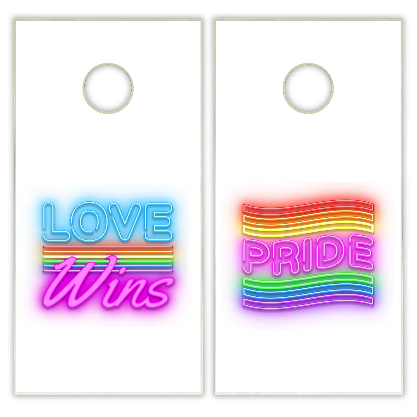 Show off at your next event with this specialty-designed Pride Neon Cornhole party game set!