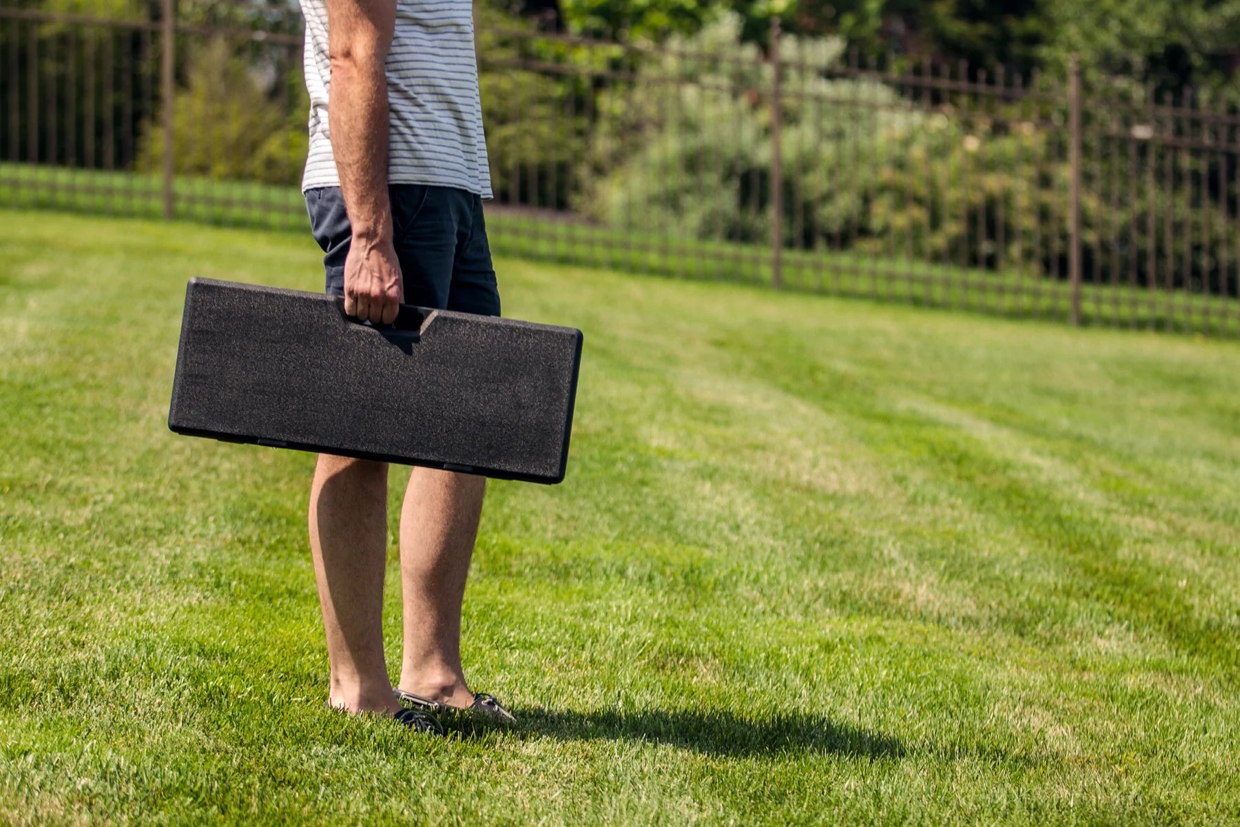 The game of horseshoe has been enjoyed for thousands of years. We don’t plan on stopping that trend any time soon. Keep the tradition going with the Triumph Premium Forged Horseshoe Set. With four powder-coated, forged steel horseshoes, two powder-coated, forged steel stakes and one hard plastic case, this set comes complete with almost everything needed to get the games going. Just grab a hammer and you’re ready to set up your pit. The Triumph steel horseshoe features a finger positioner making them easier to hold, as well as ringer breakers, allowing it to spin when hitting the stake instead of bouncing off. When you’re ready to pack up, the hard-plastic carry case with locking tabs makes transportation and storage simple and easy.