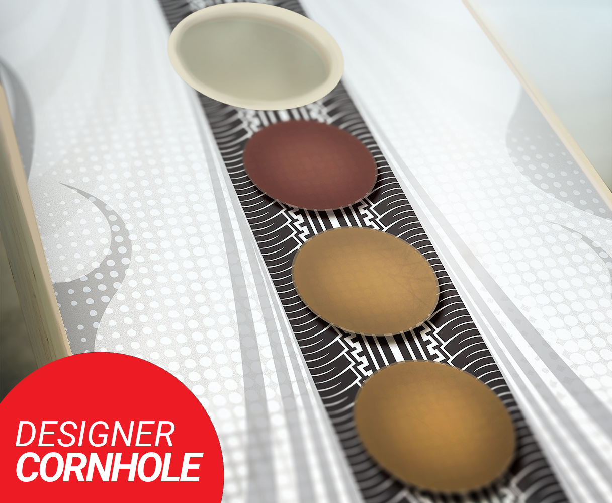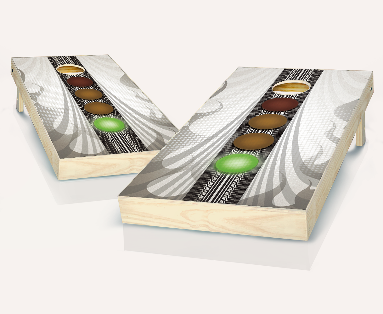Show off at your next event with this specialty designed cornhole set! The decal is printed vinyl and finished with a clear coat polyurethane to protect your boards for years. This 24"x48" set of cornhole boards comes with folding legs and you can add a full set of 8 standard cornhole bags. The boards are completely sanded for a smooth finish. These boards are made of quality 1/2" plywood and will hold up to anything you throw at them. Great for a BBQ, tailgating, camping, or just a relaxing day in the sun. Our boards are ACA Certified!