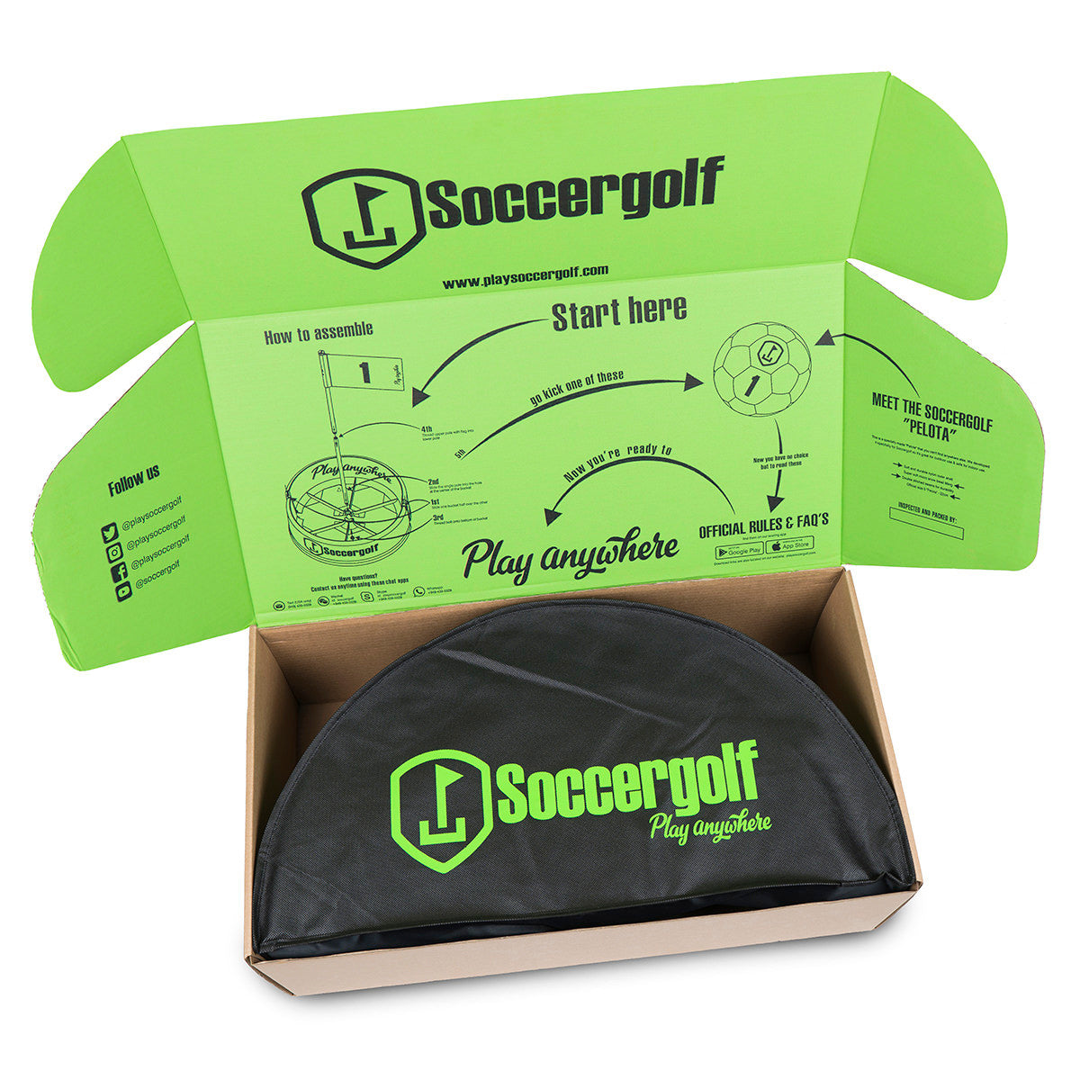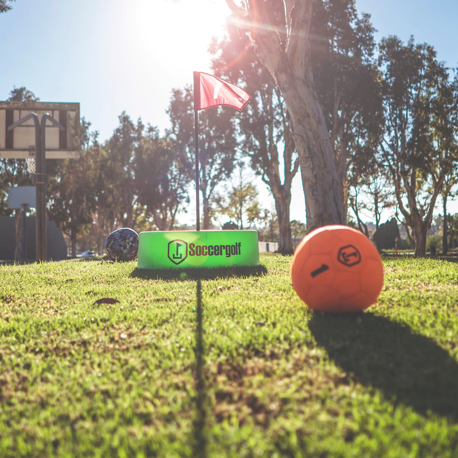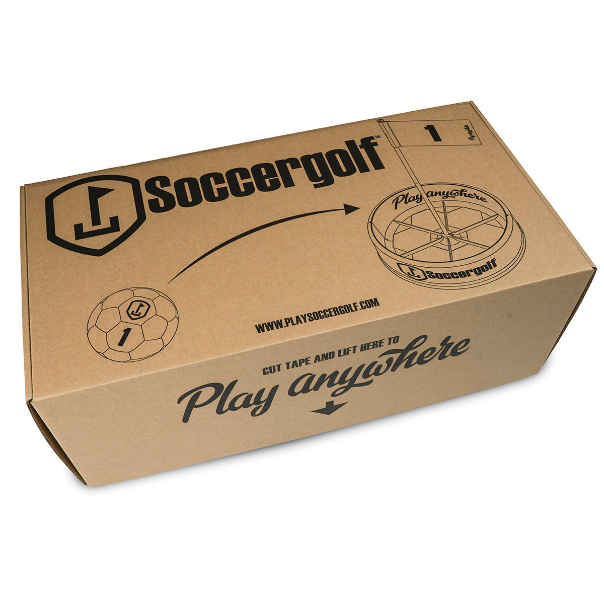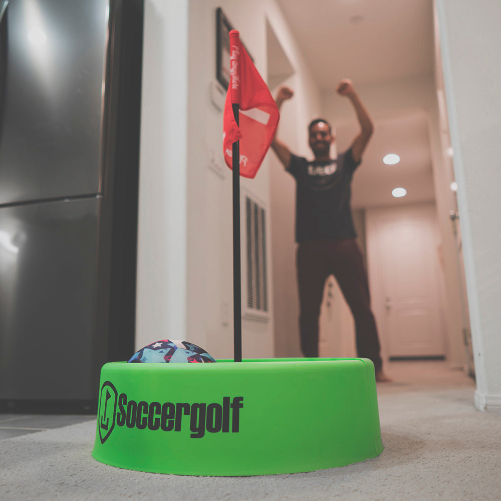 This is our newly developed game combining Soccer with Golf that can be played on any surface. The winner is the one who post the lowest overall score at the end of the 9 or 18 holes. The rules for the game play can be found in the box or on our free app and here on this site. Now just hit that "add to cart" button and turn your house into a golf course.