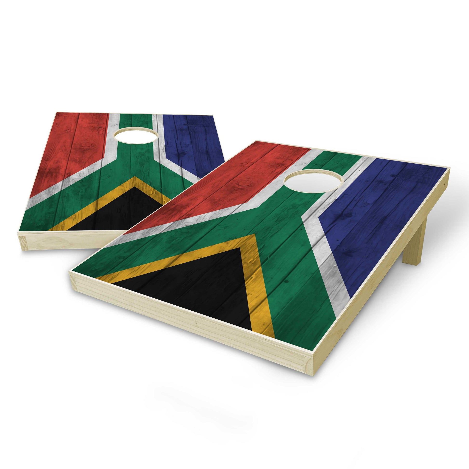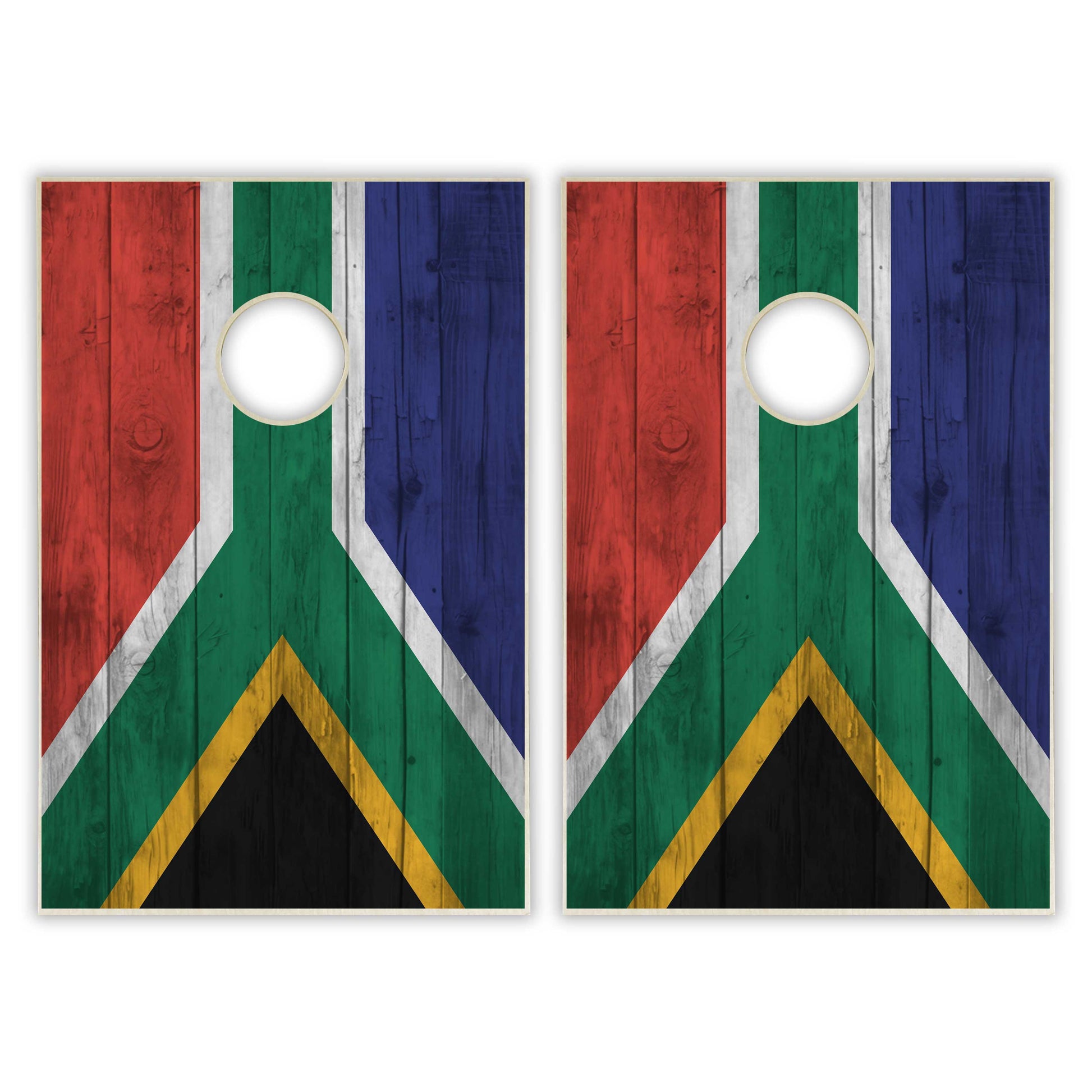 South Africa Flag Tailgate Cornhole Set - Distressed Wood