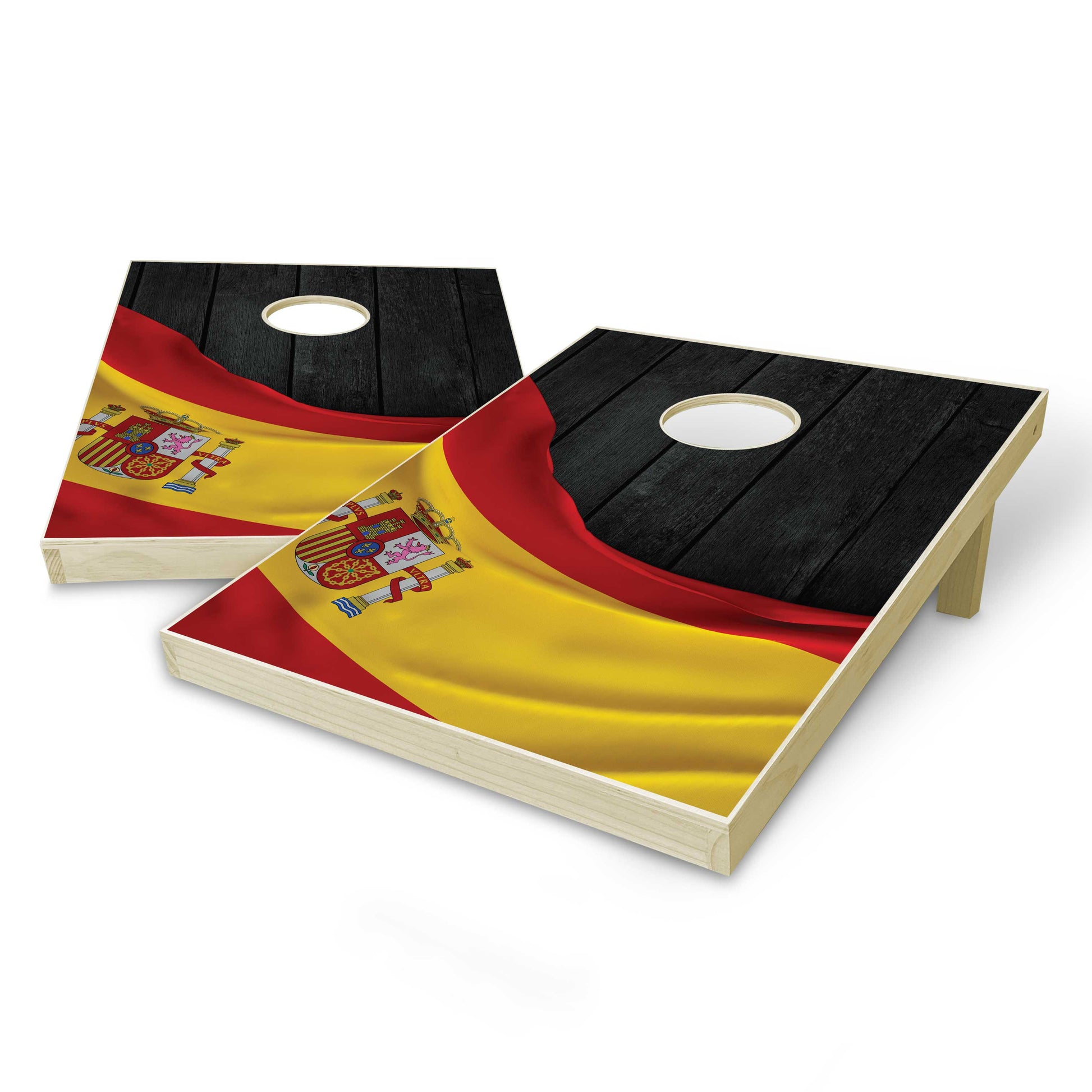 Spain Flag Tailgate Cornhole Set - Black Wood