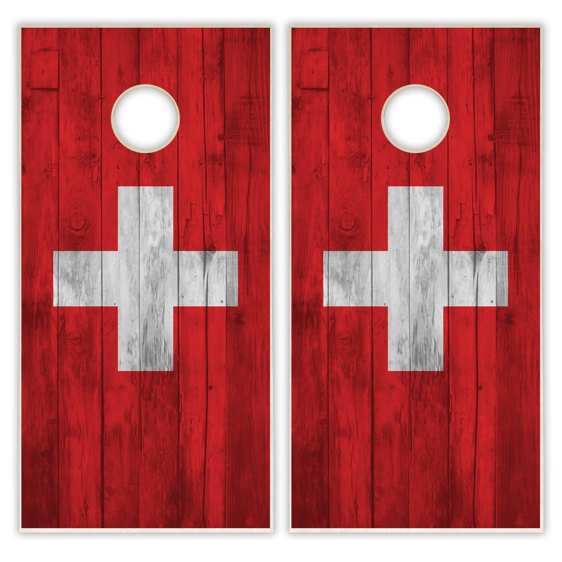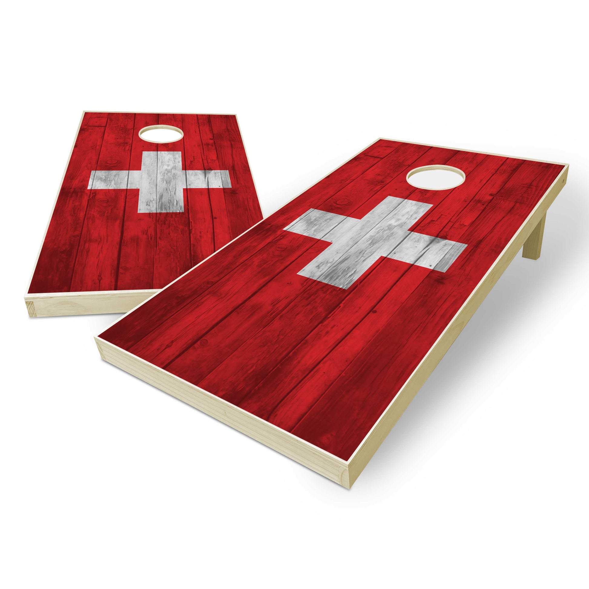 Show off at your next event with this specialty-designed Switzerland Flag Cornhole party game set!