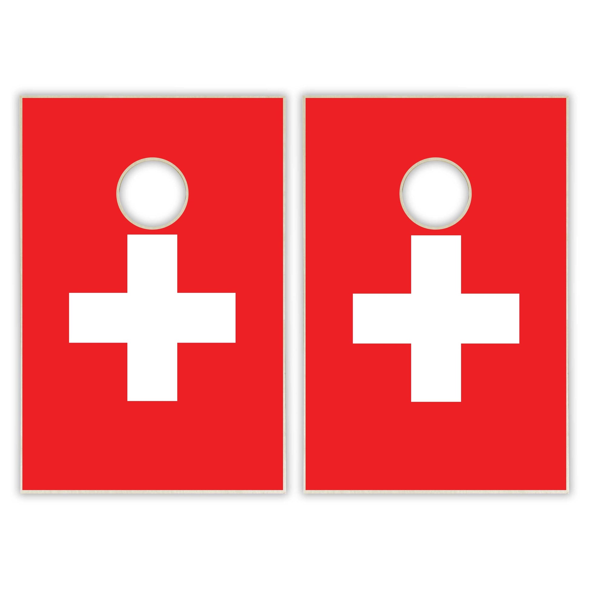 Show off at your next event with this specialty-designed Switzerland Flag Cornhole party game set!