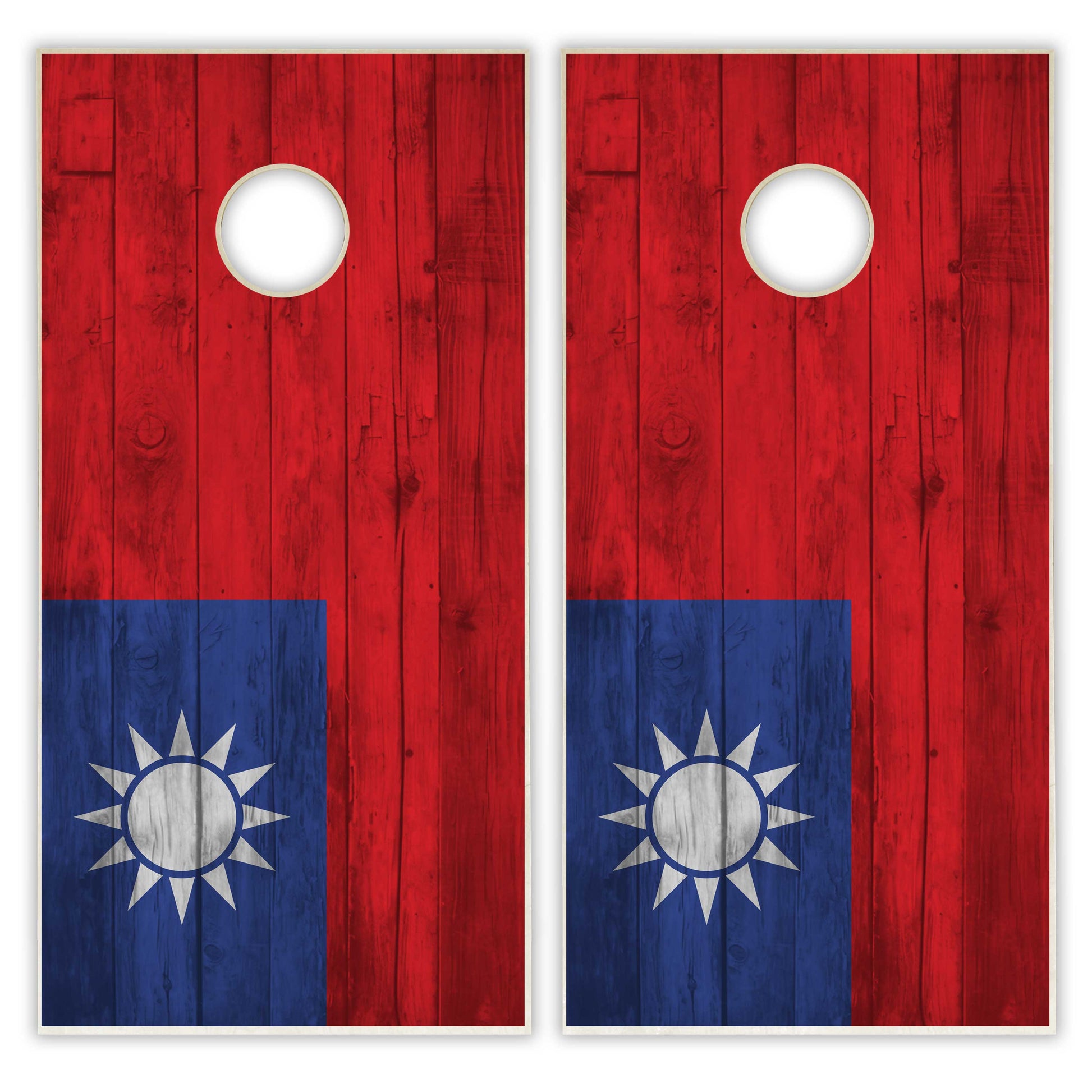 Show off at your next event with this specialty-designed Taiwan Flag Cornhole party game set!