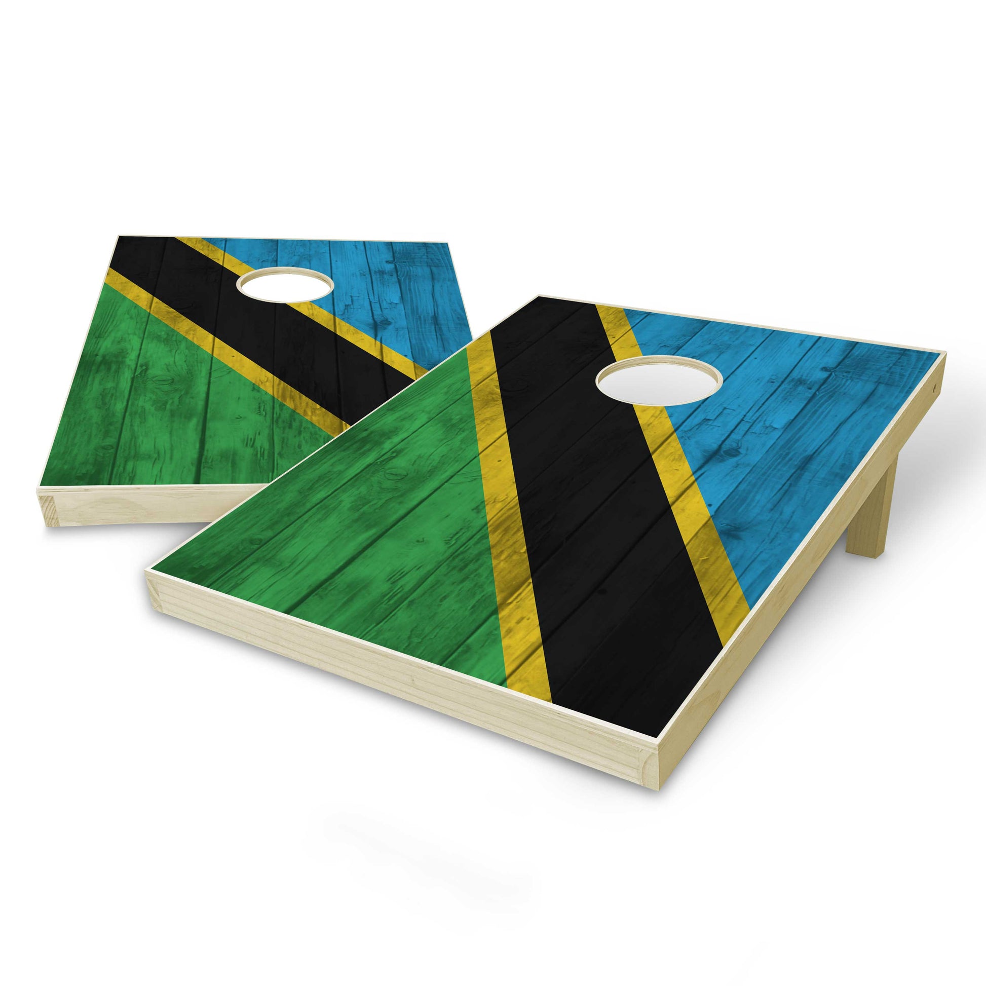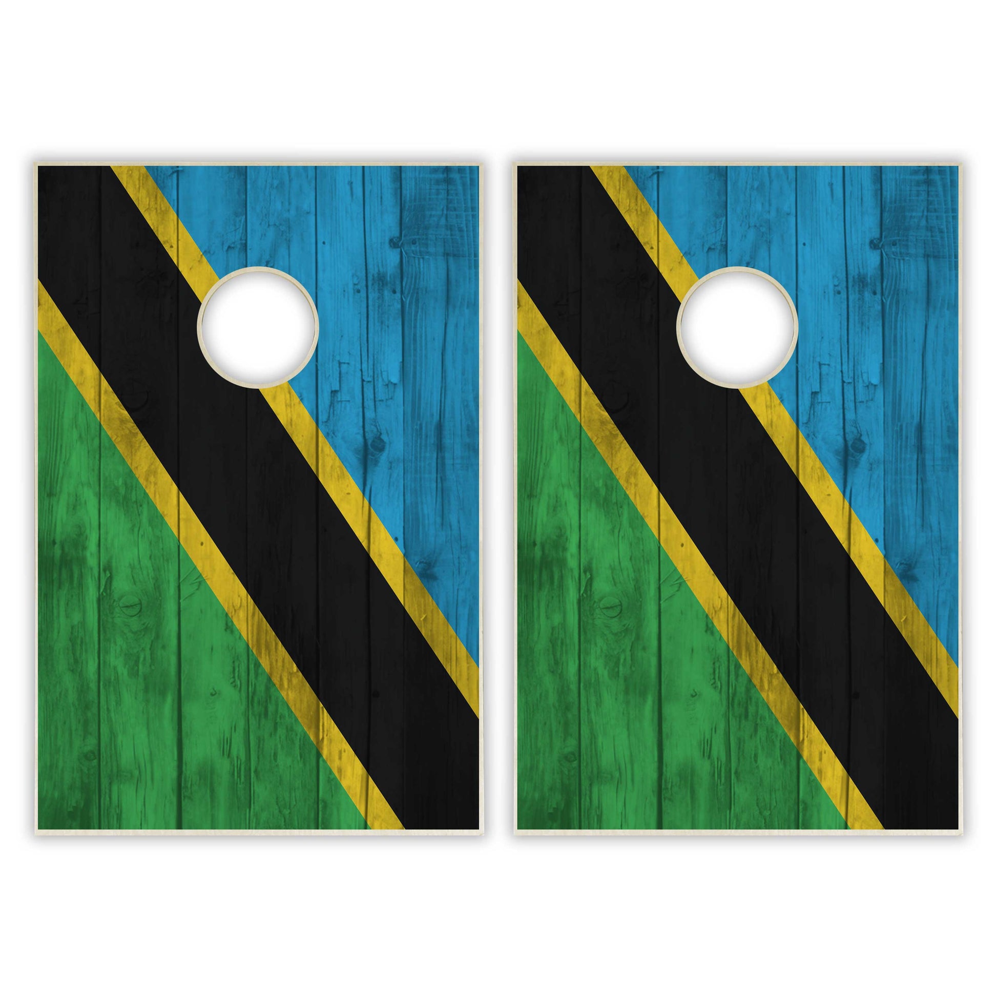 Tanzania Flag Tailgate Cornhole Set - Distressed Wood