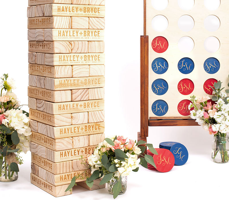 Our "That's Amore" yard game set will have your guests singing "vita bella..." as they play your specially engraved Customized Giant Tumbling Timbers and Customized Giant Connect 4. Two of our favorite games, now combined in one package to celebrate your love and entertain all your friends and family.