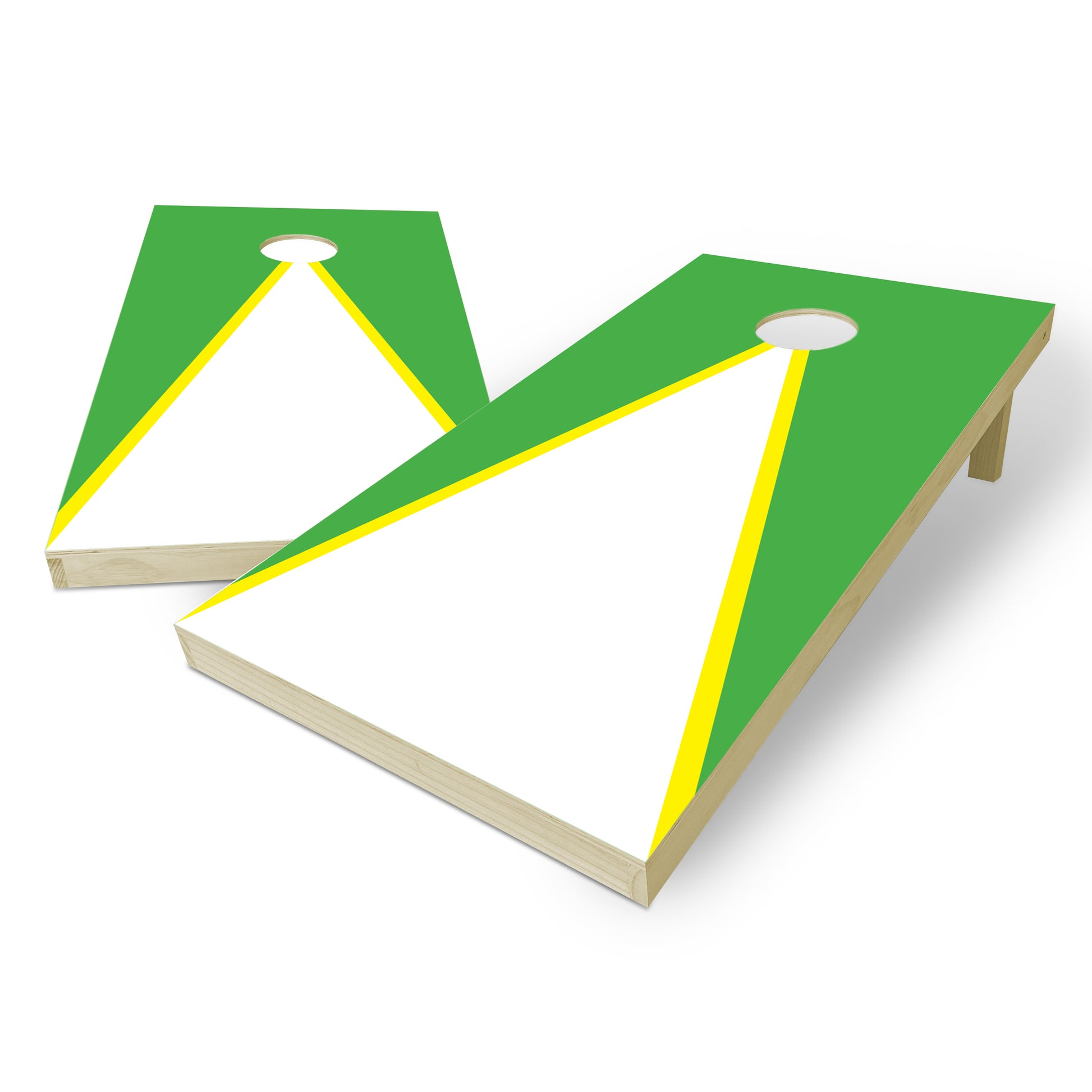 - 2 Regulation Size (24" x 48") Triangle Cornhole Boards with printed vinyl decals