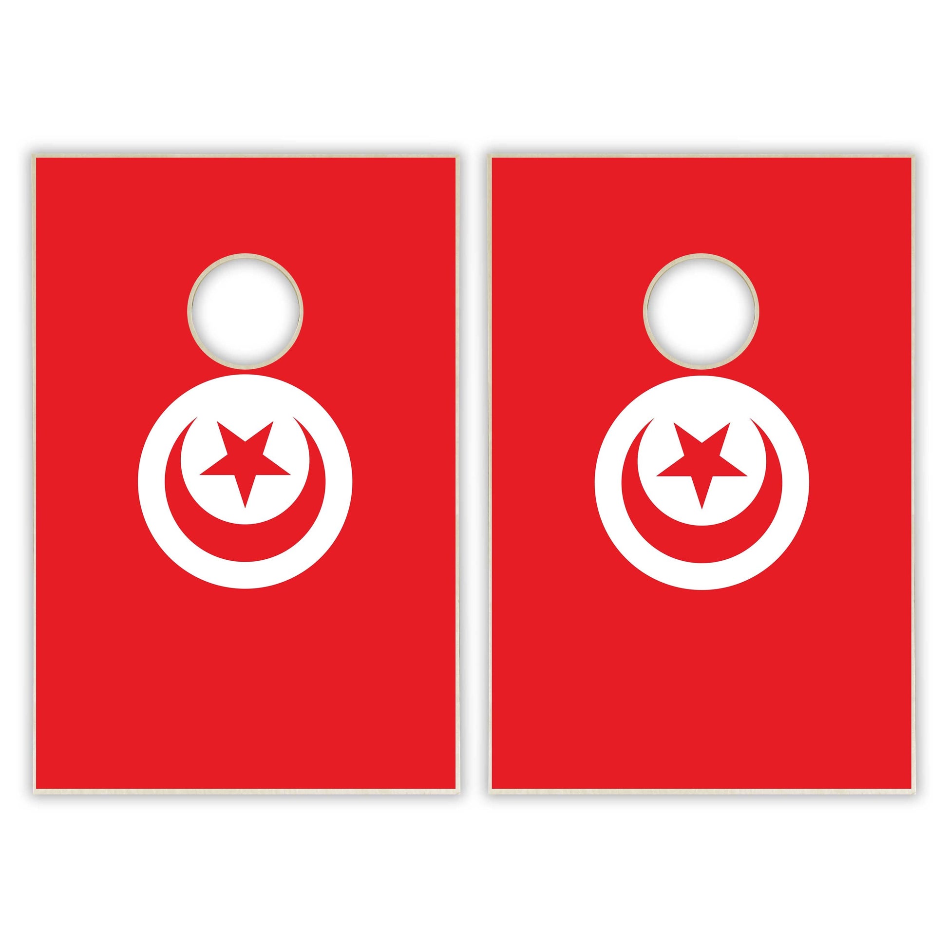 Show off at your next event with this specialty-designed Tunesia Flag Cornhole party game set!