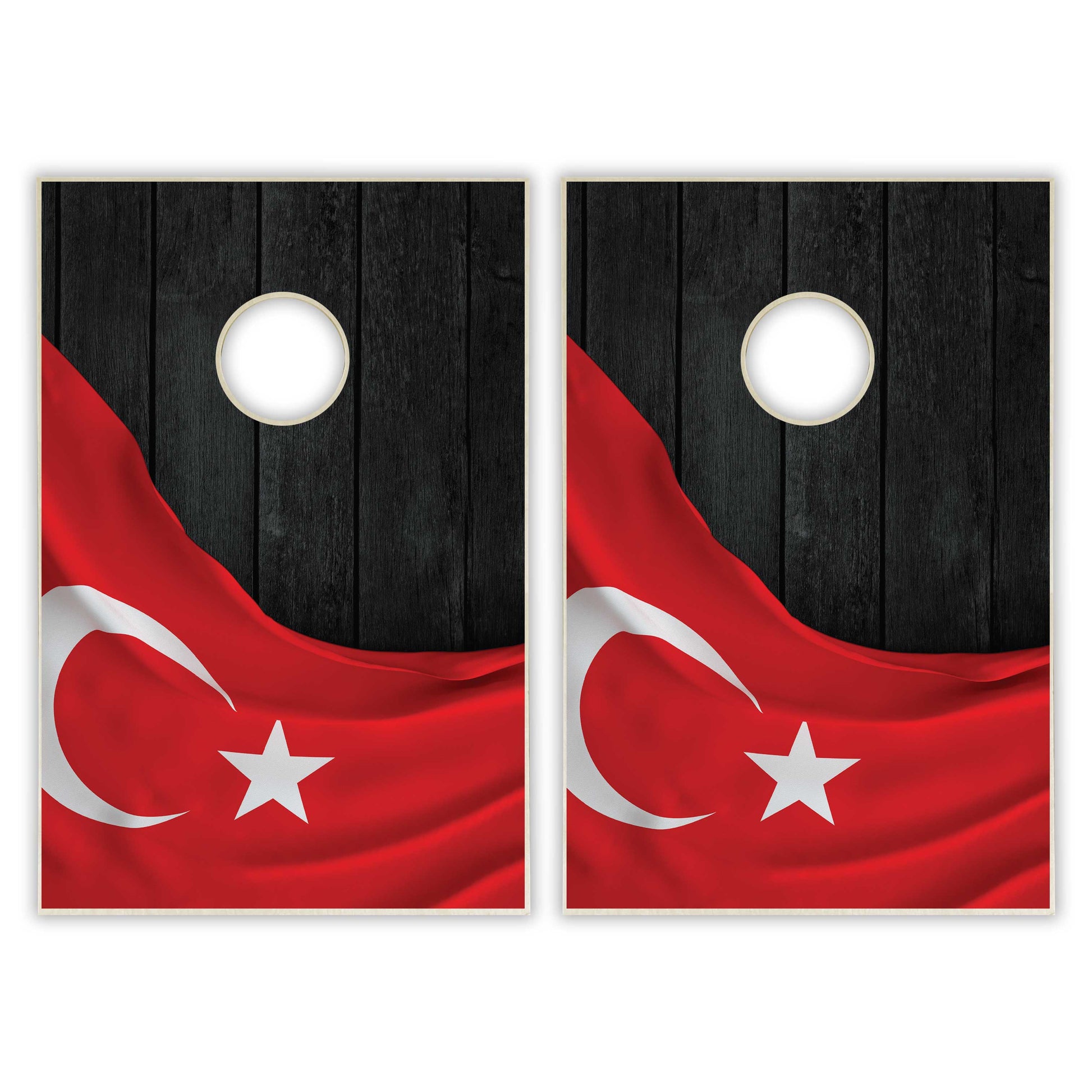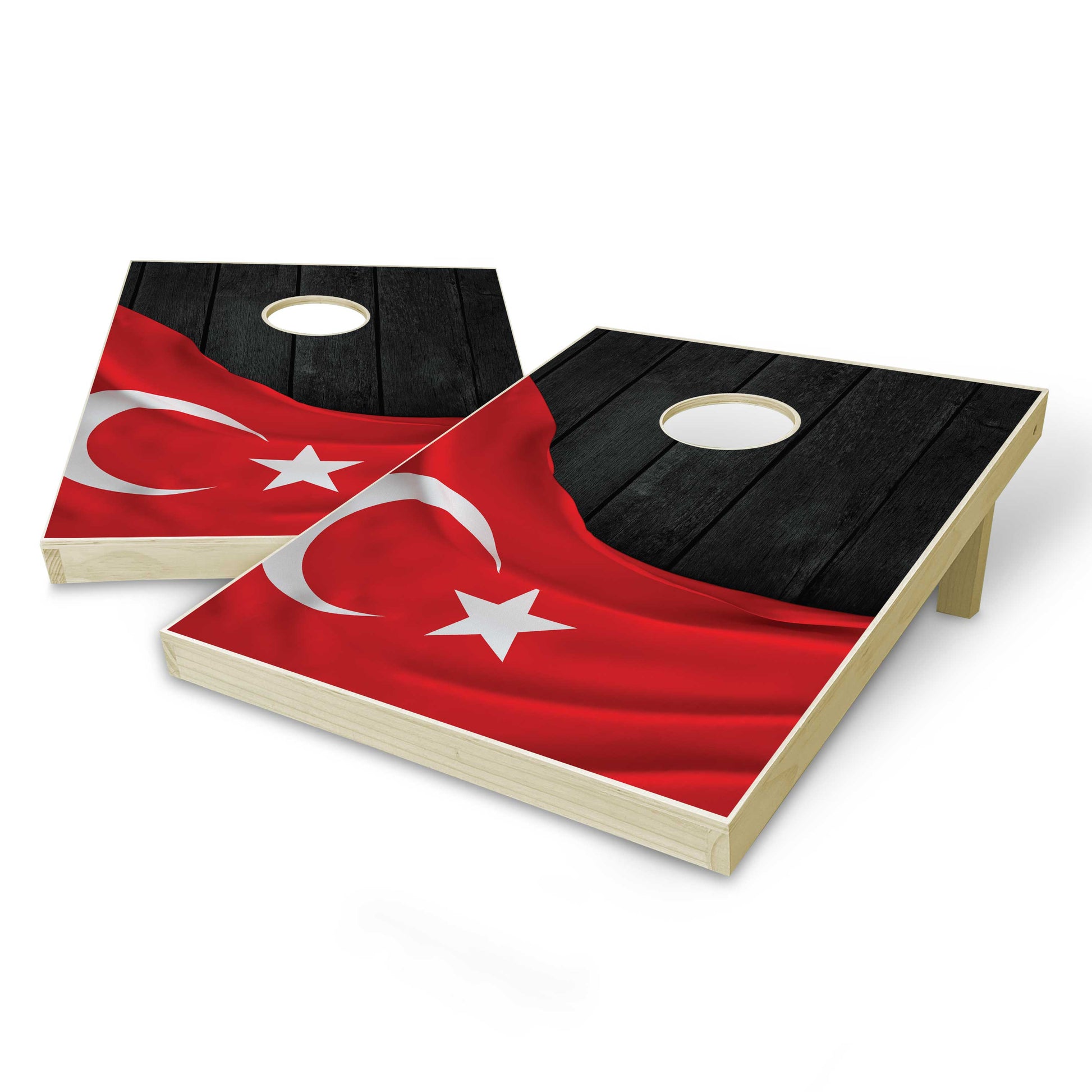 Turkey Flag Tailgate Cornhole Set - Black Wood