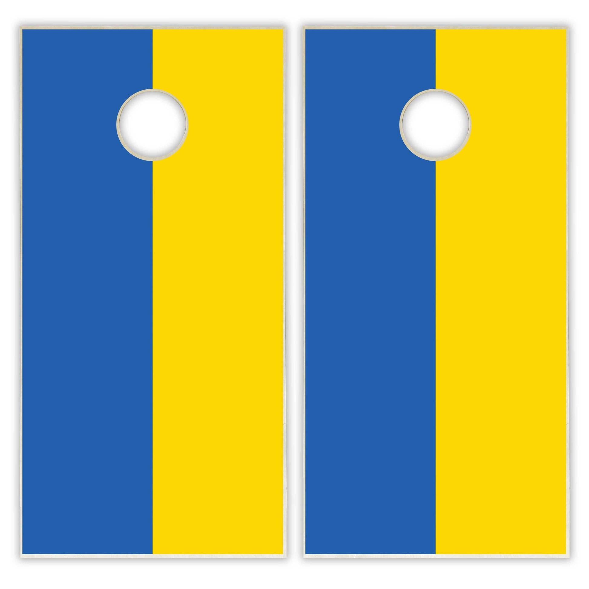 Show off at your next event with this specialty-designed Ukraine Flag Cornhole party game set!
