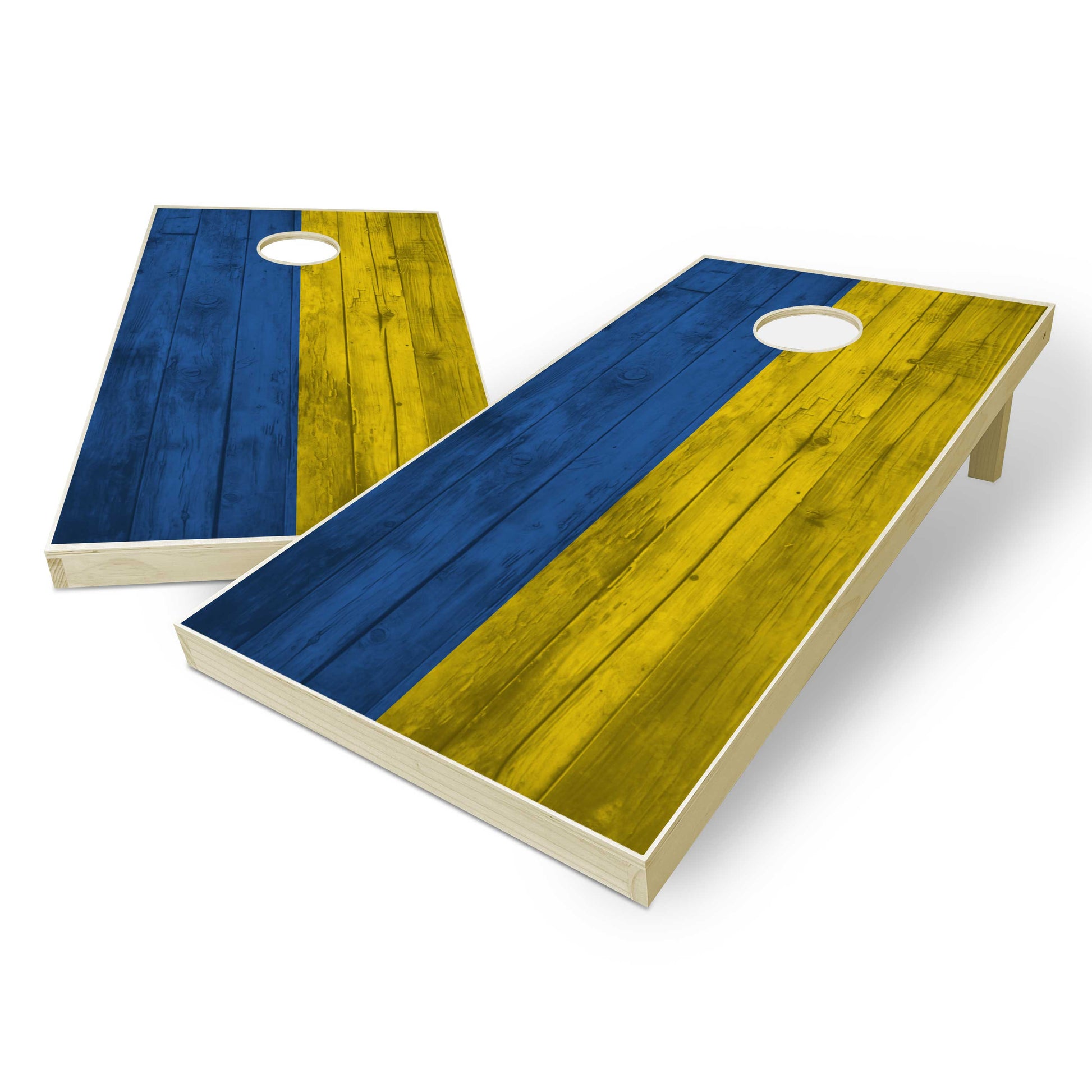Ukraine Flag Cornhole Set - Distressed Wood