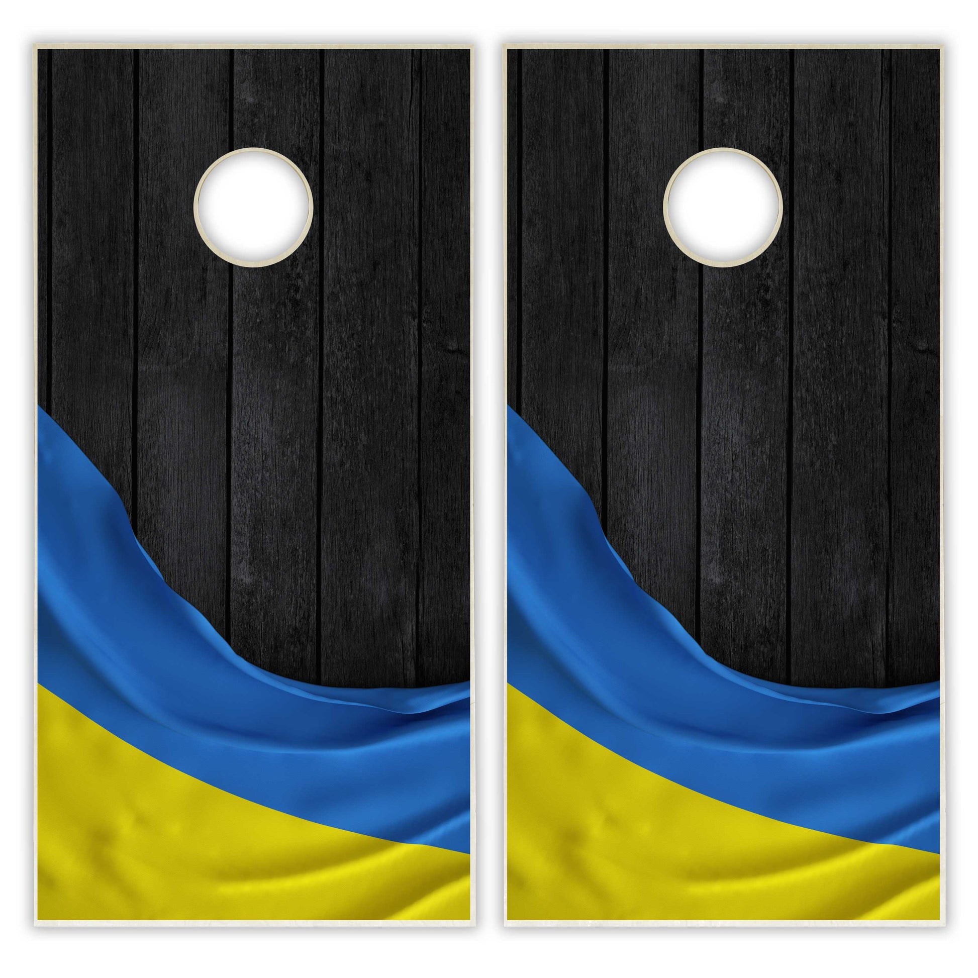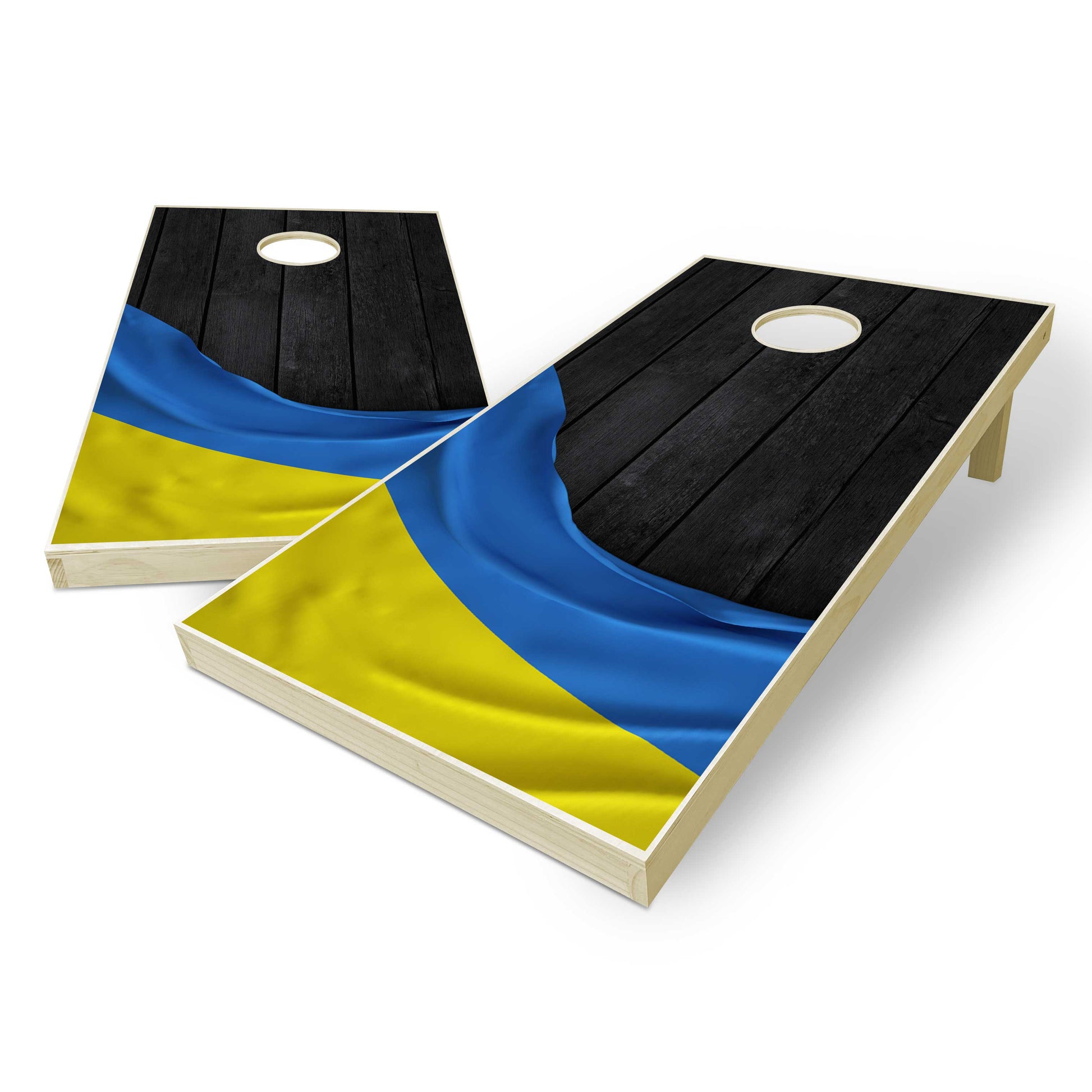 Show off at your next event with this specialty-designed Ukraine Flag Cornhole party game set!