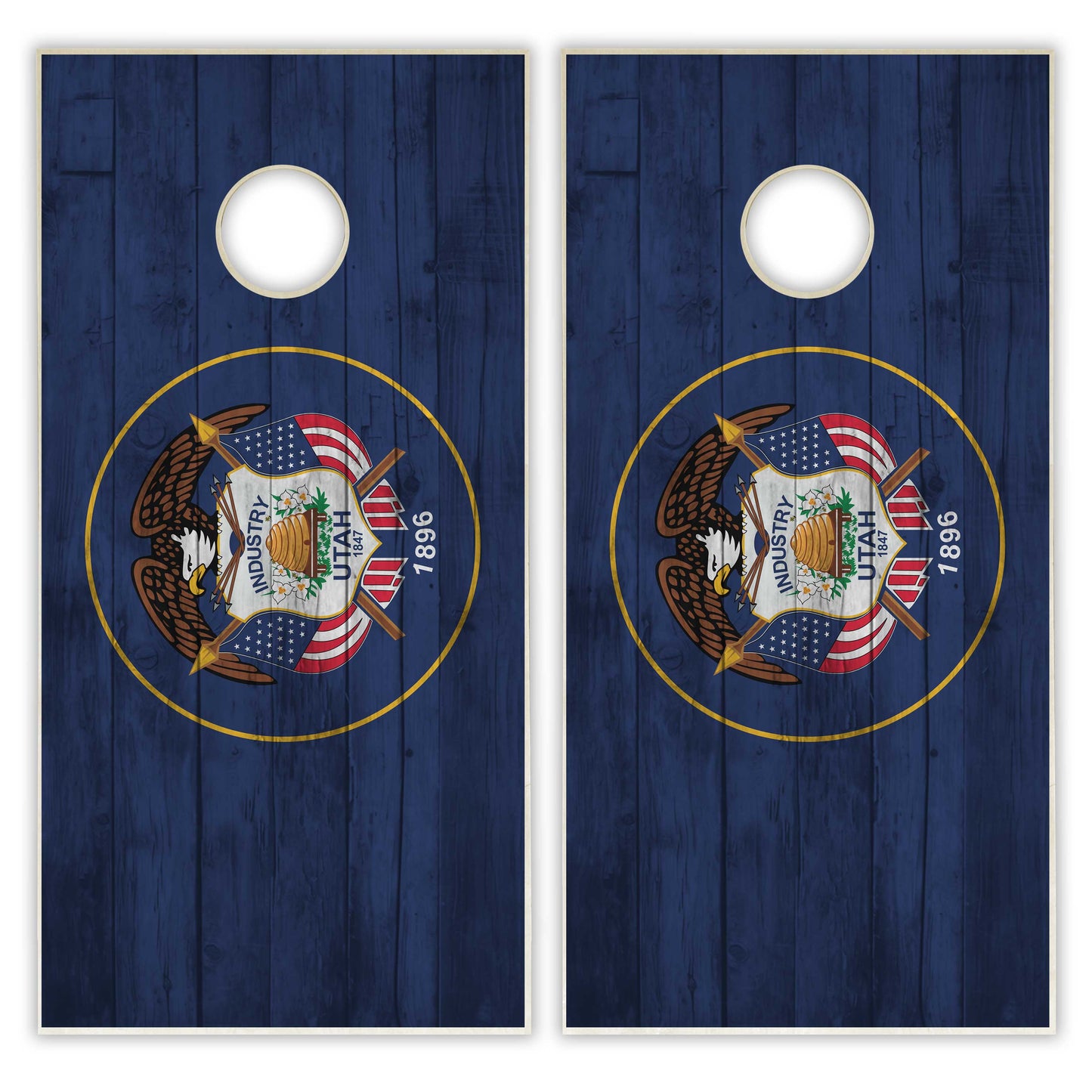 - 2 Regulation Size (24" x 48") Cornhole Boards with Utah Flag printed vinyl decals