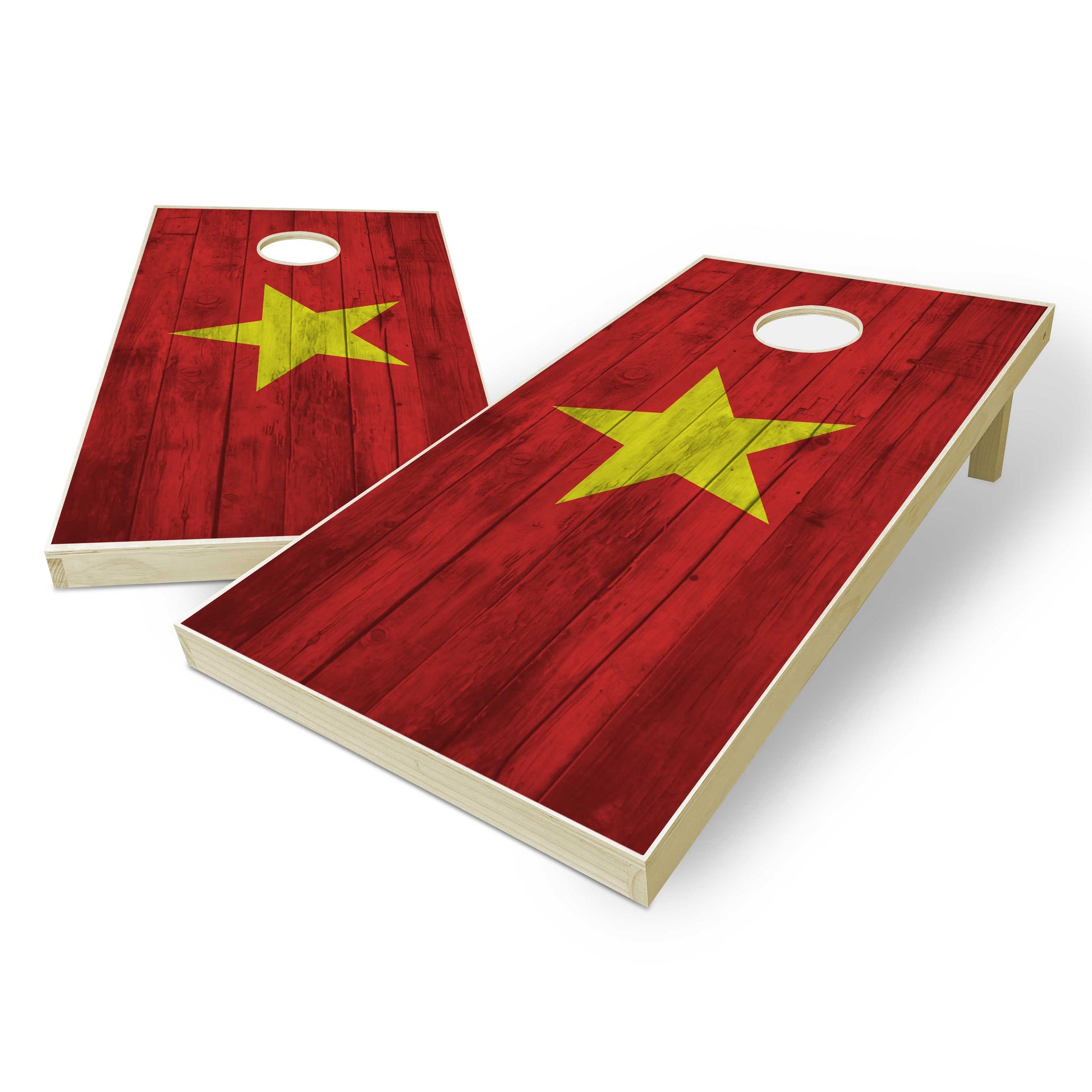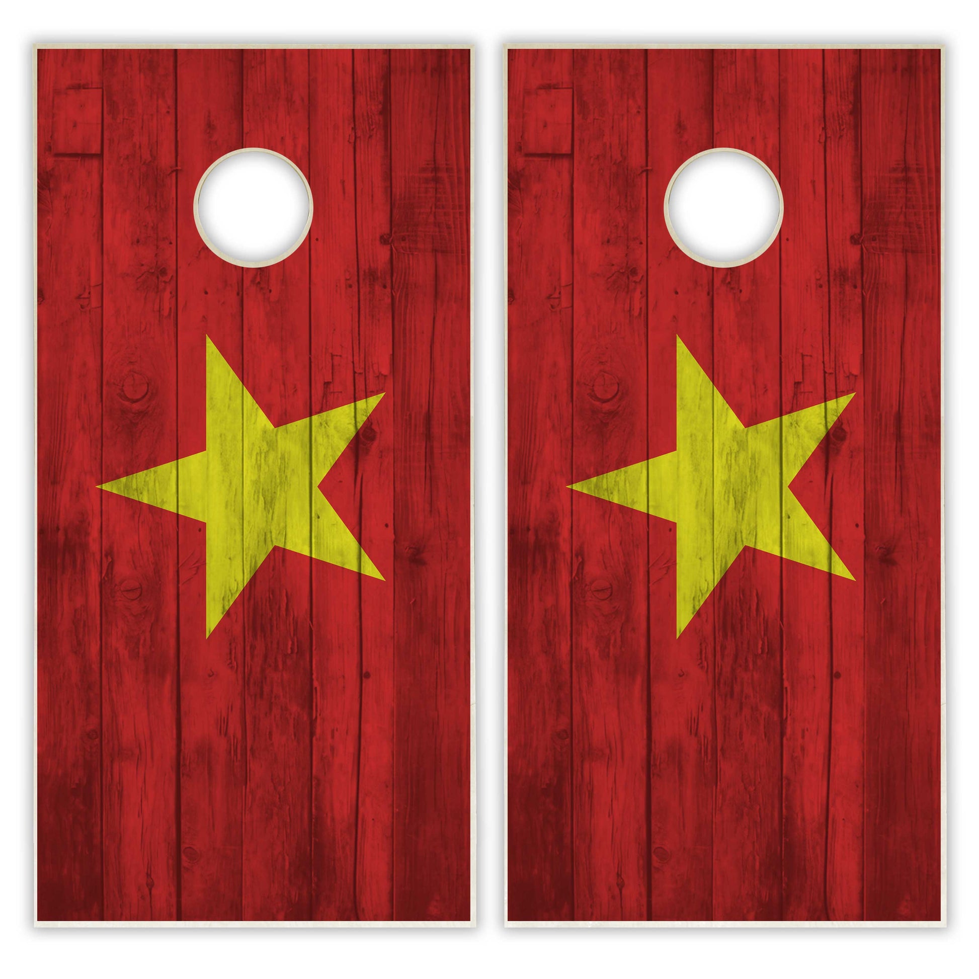 Show off at your next event with this specialty-designed Vietnam Flag Cornhole party game set!