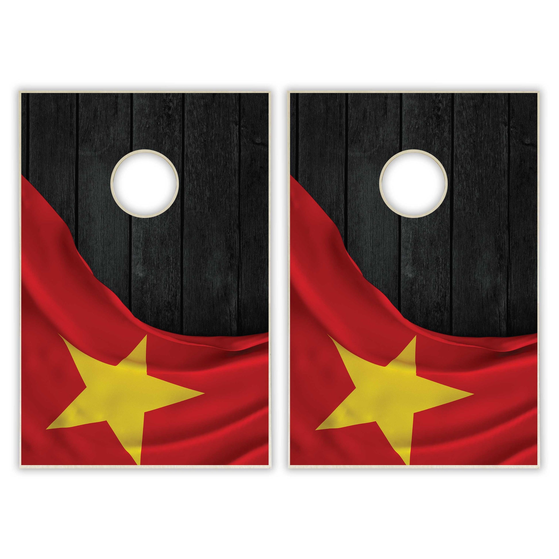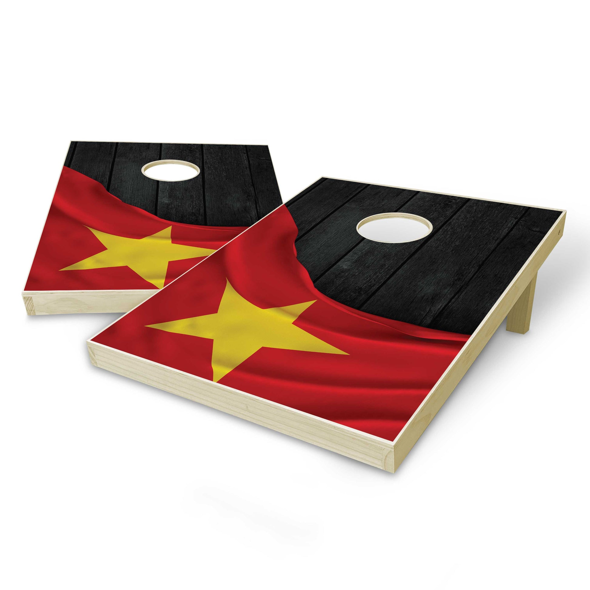 Show off at your next event with this specialty-designed Vietnam Flag Cornhole party game set!